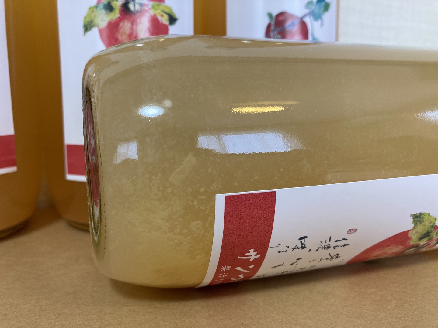 〇ストレートジュースの特徴である「沈殿」がビンの底にあります。