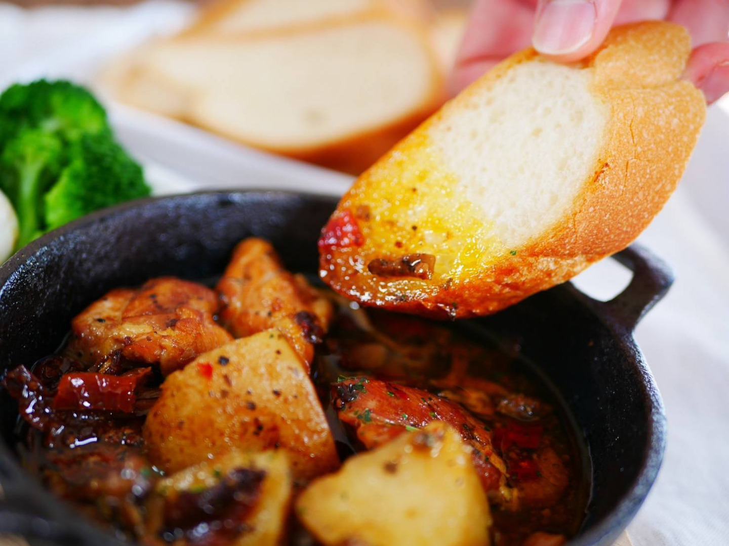 ドライトマトを使ったチキンとじゃがいもの絶品アヒージョです。
