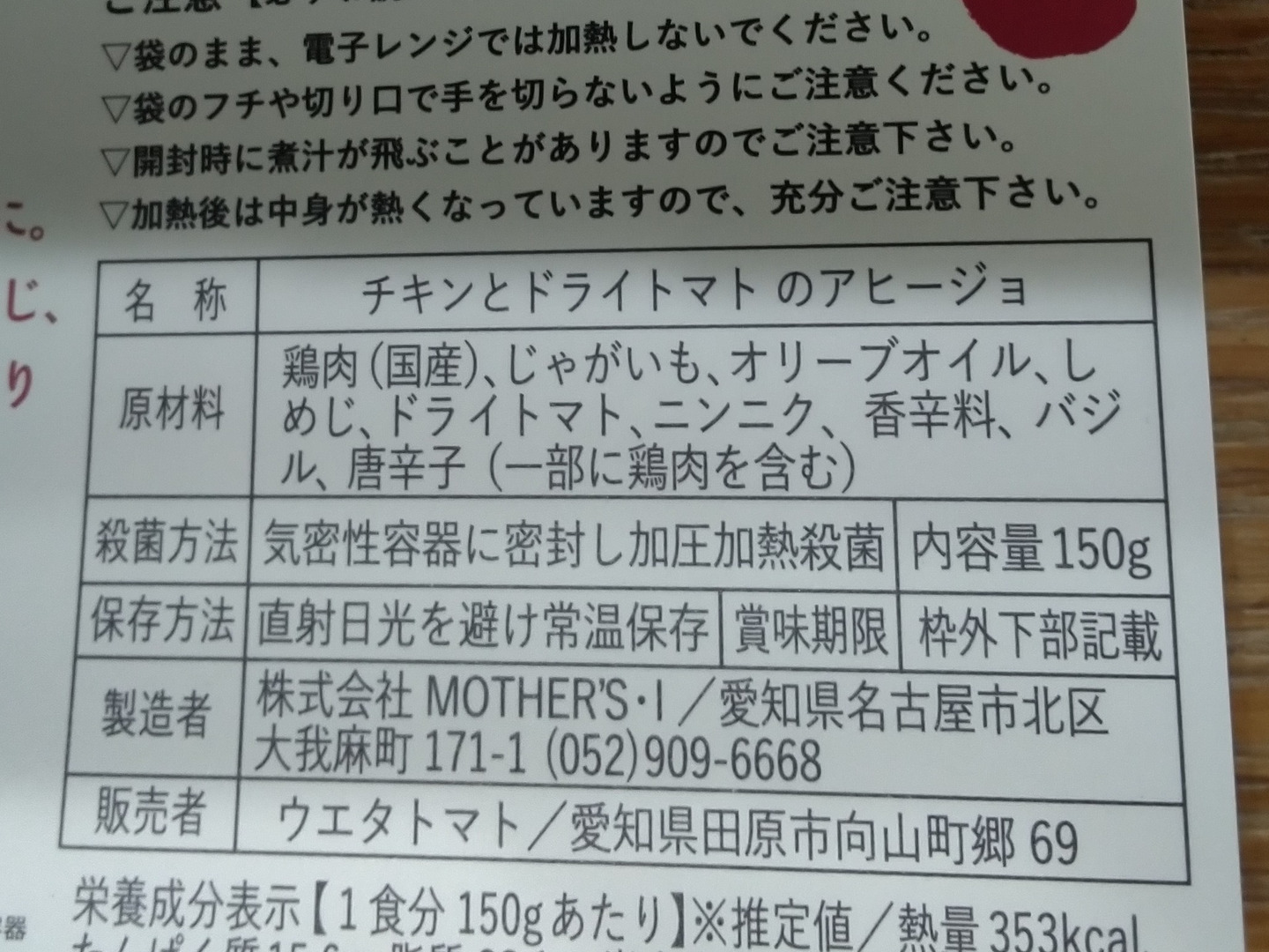 国産食材のみを使い、無添加・無着色のレトルト食品です。
