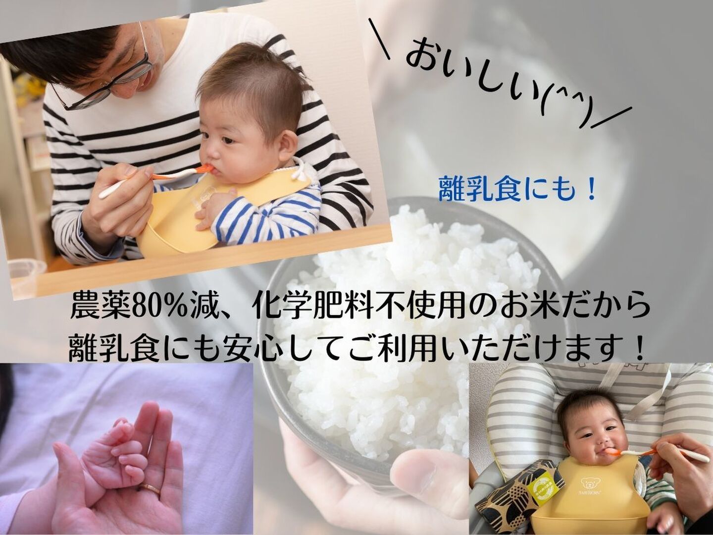 - 化学肥料不使用、農薬80%減の安心・安全米!(特別栽培米認証)