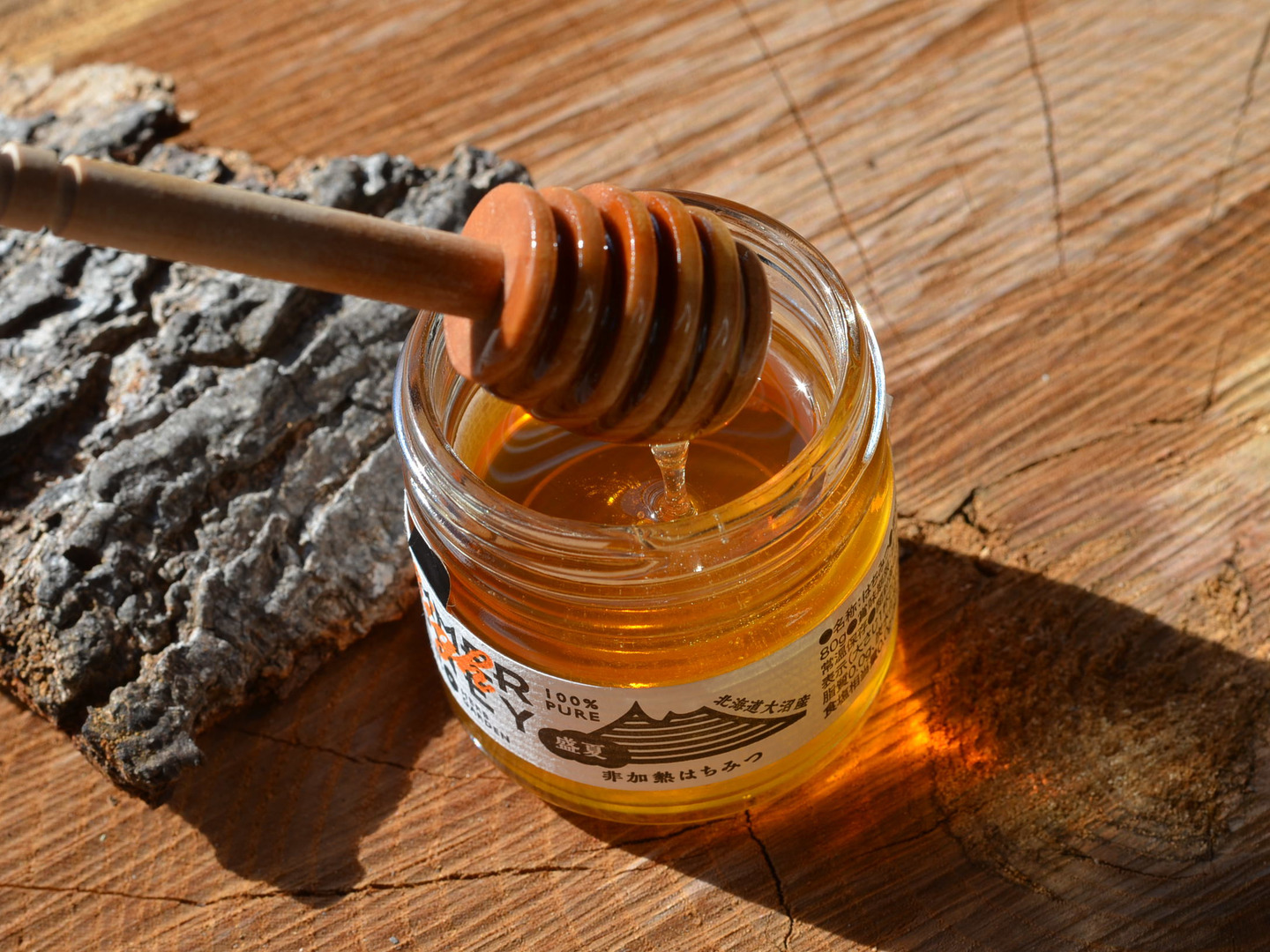 大沼ガロハーブガーデンの蜂蜜は、加熱処理を一切しない、採れたままの「完熟生はちみつ」です。一般に売られている蜂蜜は、その過程で加熱乾燥をすることで効率を上げ生産性をあげていますが、非加熱はちみつは、働き蜂が全員で羽で風を送り、ゆっくり時間をかけて水分を蒸発させ糖度80度前後のはちみつを作ります。時間はかかりますが、そのおかげで、ビタミン、ミネラル、酵素などの栄養が失われずにナチュラルなはちみつに仕上がります。