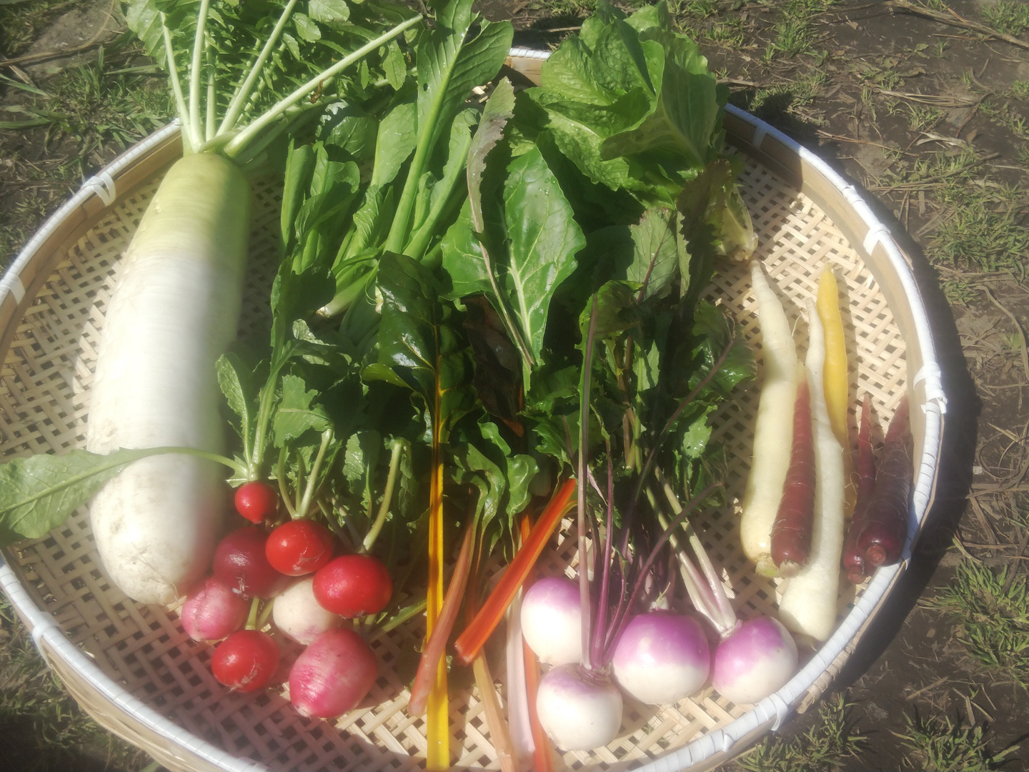 農薬や化学肥料は使用せず、母なる大地と対話し、試行錯誤しながらのお野菜作り、形や大きさは不揃いですが、沢山の方に食べて頂けるように耕し続けます。