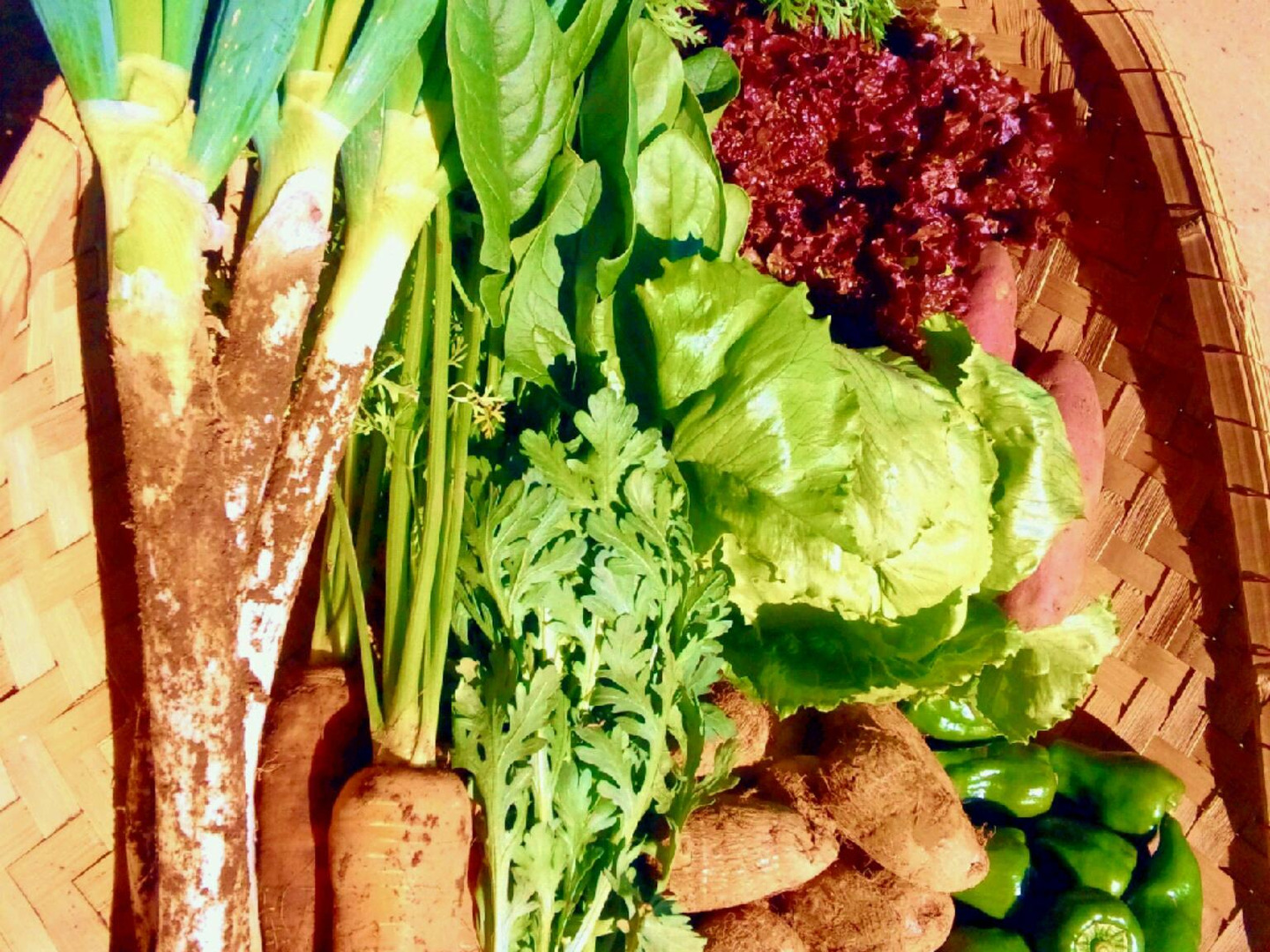 秋・・・人参、里芋、さつま芋、生姜、生落花生、小松菜、ほうれん草、わさび菜、ルッコラ、春菊、サニーレタス、ラディッシュ、ゴボウ、ネギなど