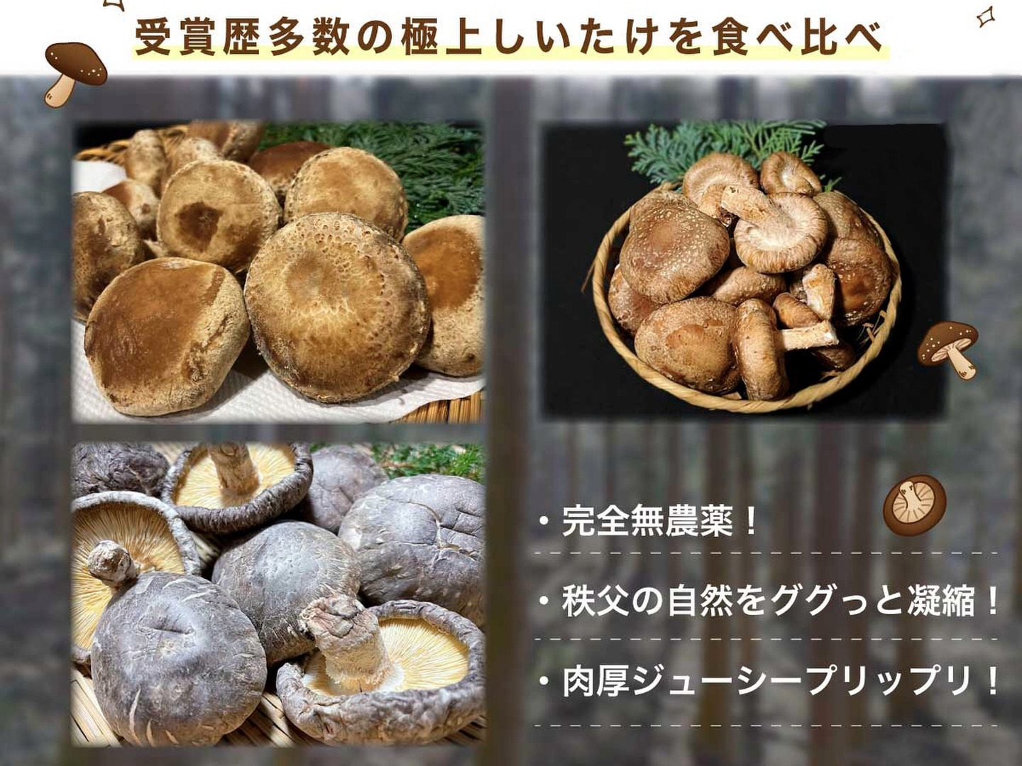自然豊かな埼玉県秩父市にて椎茸を栽培しています。当園が栽培している原木椎茸は、埼玉県で最も名誉ある賞である「県知事賞」を受賞しました。県知事賞を受賞したことで、全国区の品評会への参加権を獲得。全国区の品評会においても「全農理事長賞」を受賞しております。全国的に栄誉ある賞を受賞した確かな技術で栽培した「高質な肉厚椎茸」を全国の方にお届けいたします。