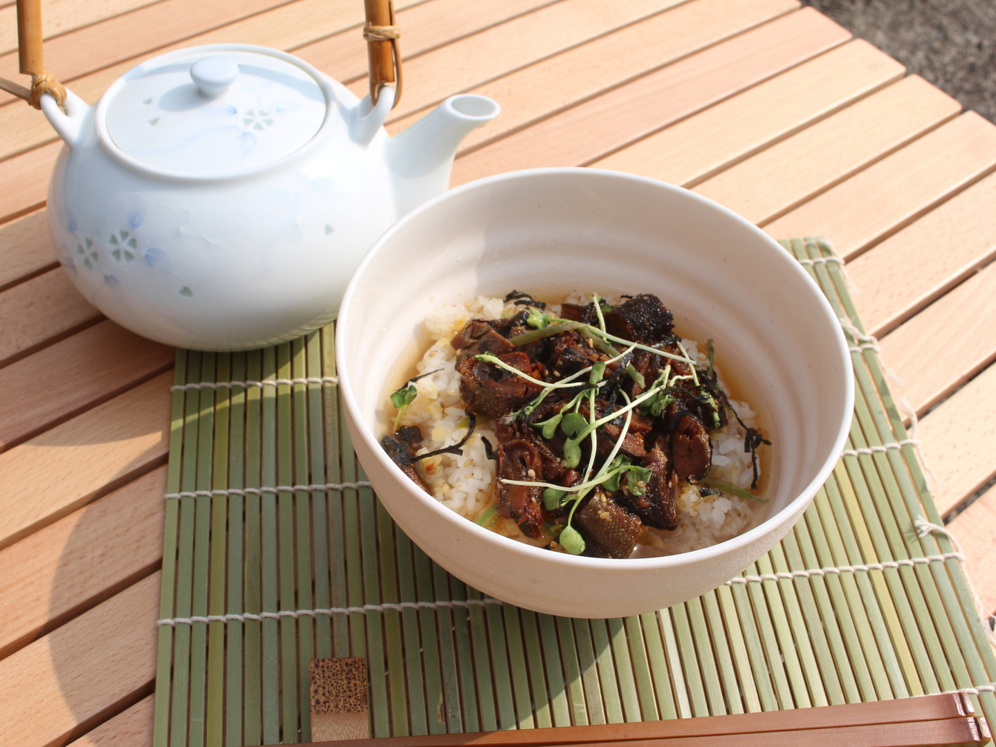 1度こんがりと素焼きして湯布院の名水を使って8時間ほど秘伝の