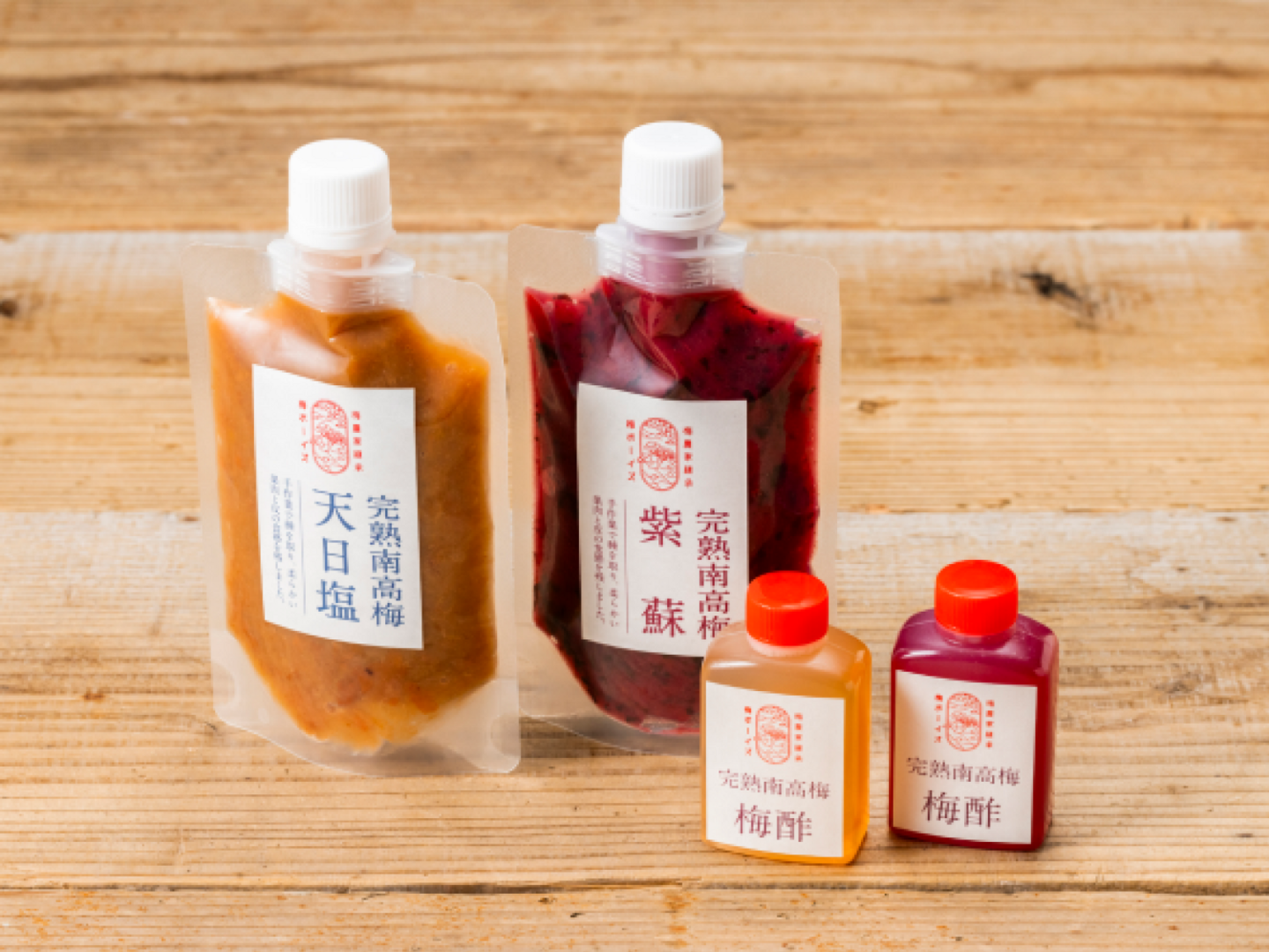 梅と塩チューブ140g,梅と紫蘇チューブ140g,お試し梅酢2種類
