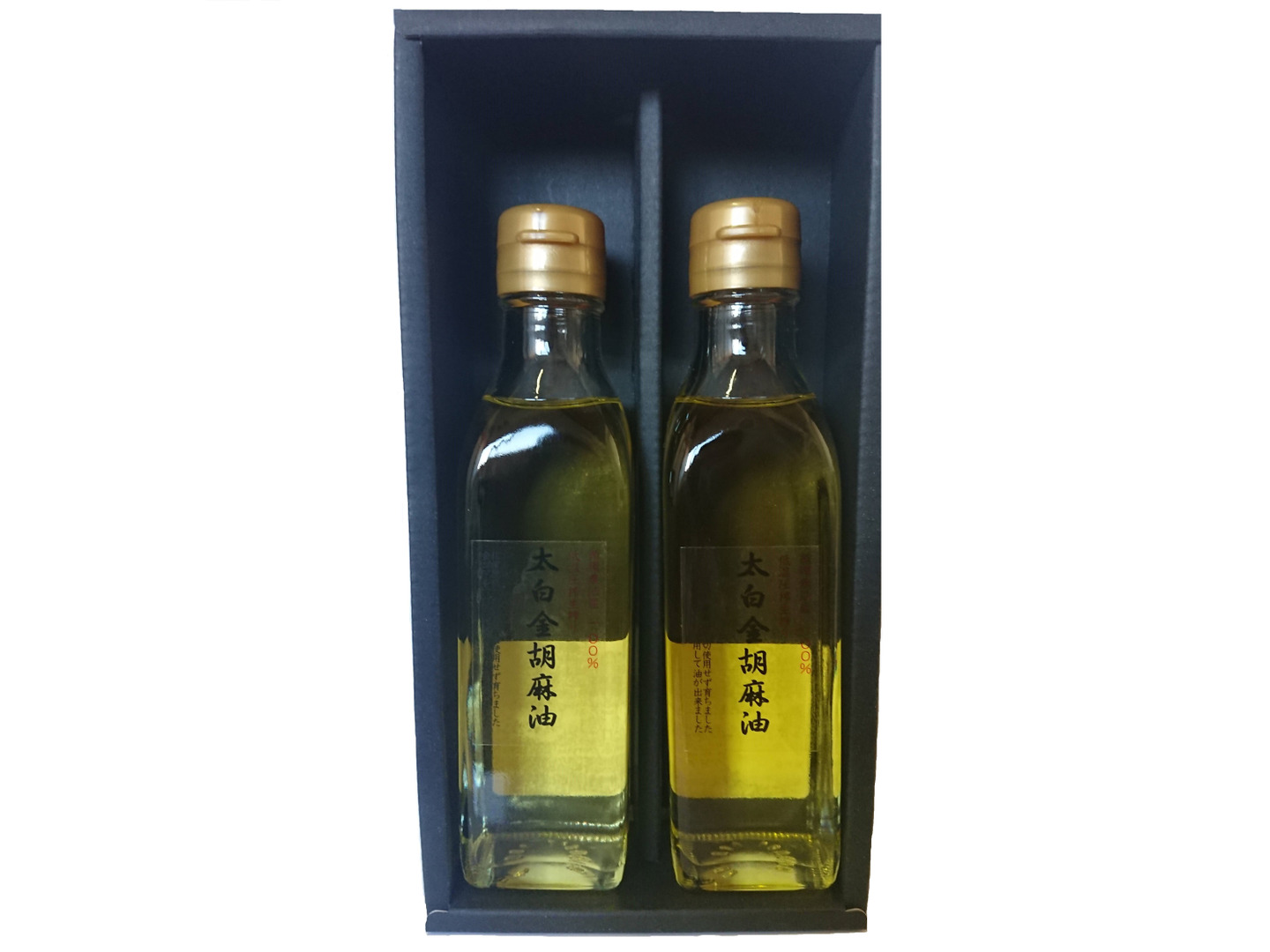 臼杵市野津町のなかた農園で循環農法(化学肥料・化学合成農薬を一切使用しない農法です)で育った金ゴマ100%の、金ゴマ油が出来ました。昔ながらの低温圧搾、生搾りの金ゴマ油です。一瓶180gの油を搾るのに金ゴマを500g使っています。