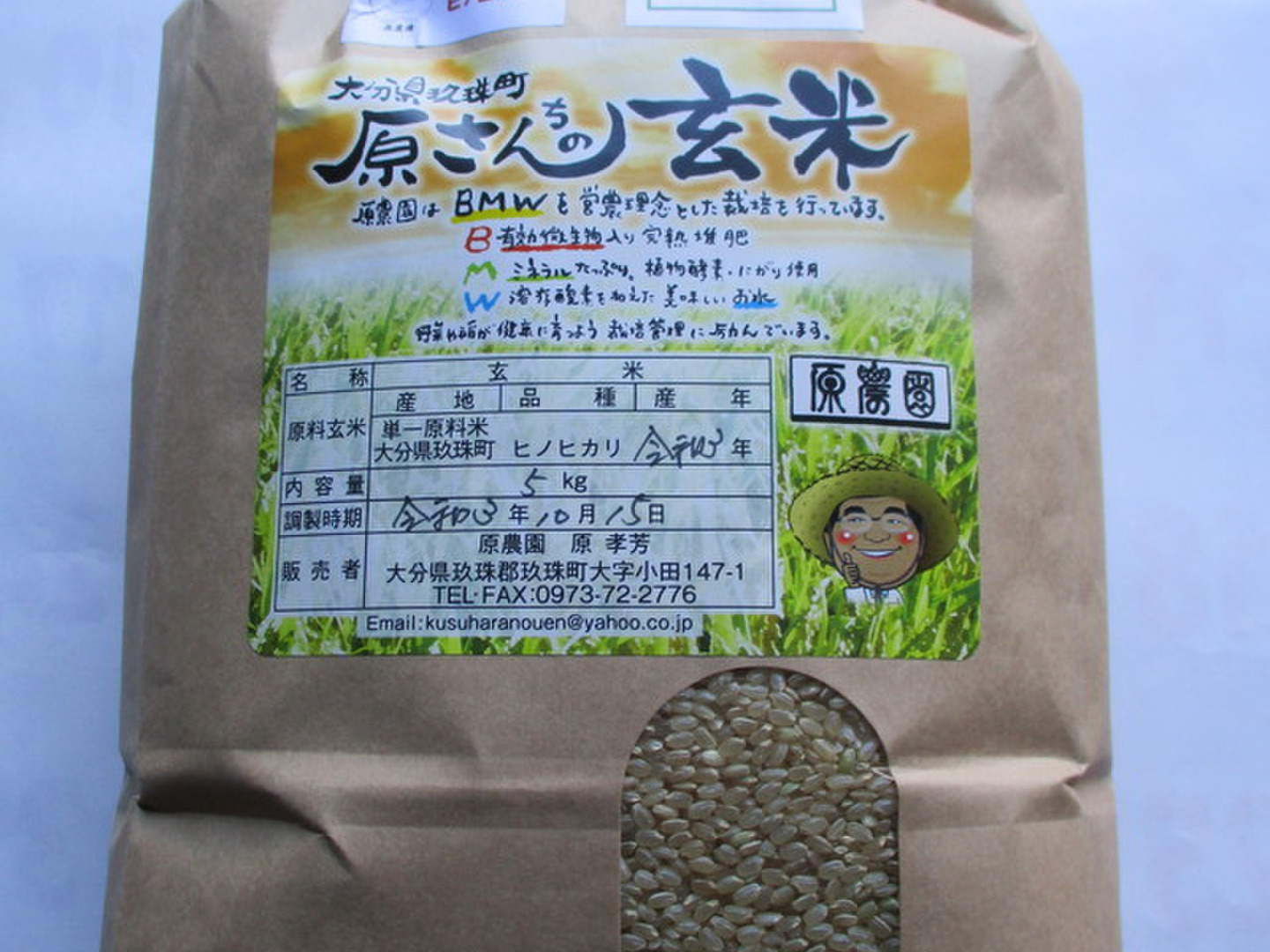 【平成天皇大嘗祭献上米】化学肥料不使用 原さんちのヒノヒカリ玄米5㎏