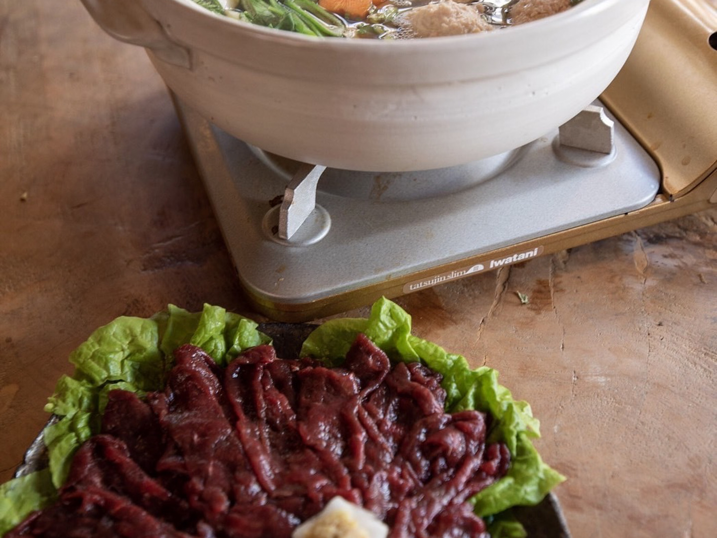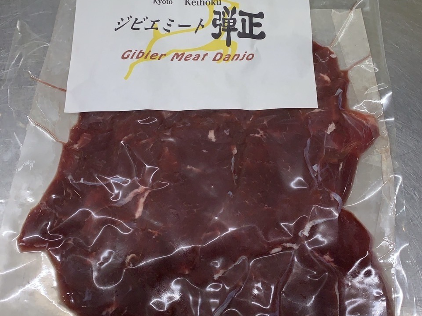 とどめ刺し後すぐの血抜きと内臓の摘出をおこなっているため、臭みが一切ありません。また、祇園で修行した料理人のもとで熟成をおこなっています。そのことによって、柔らかい肉質を実現しています。熟成した鹿肉は真空パックし、冷凍しています。