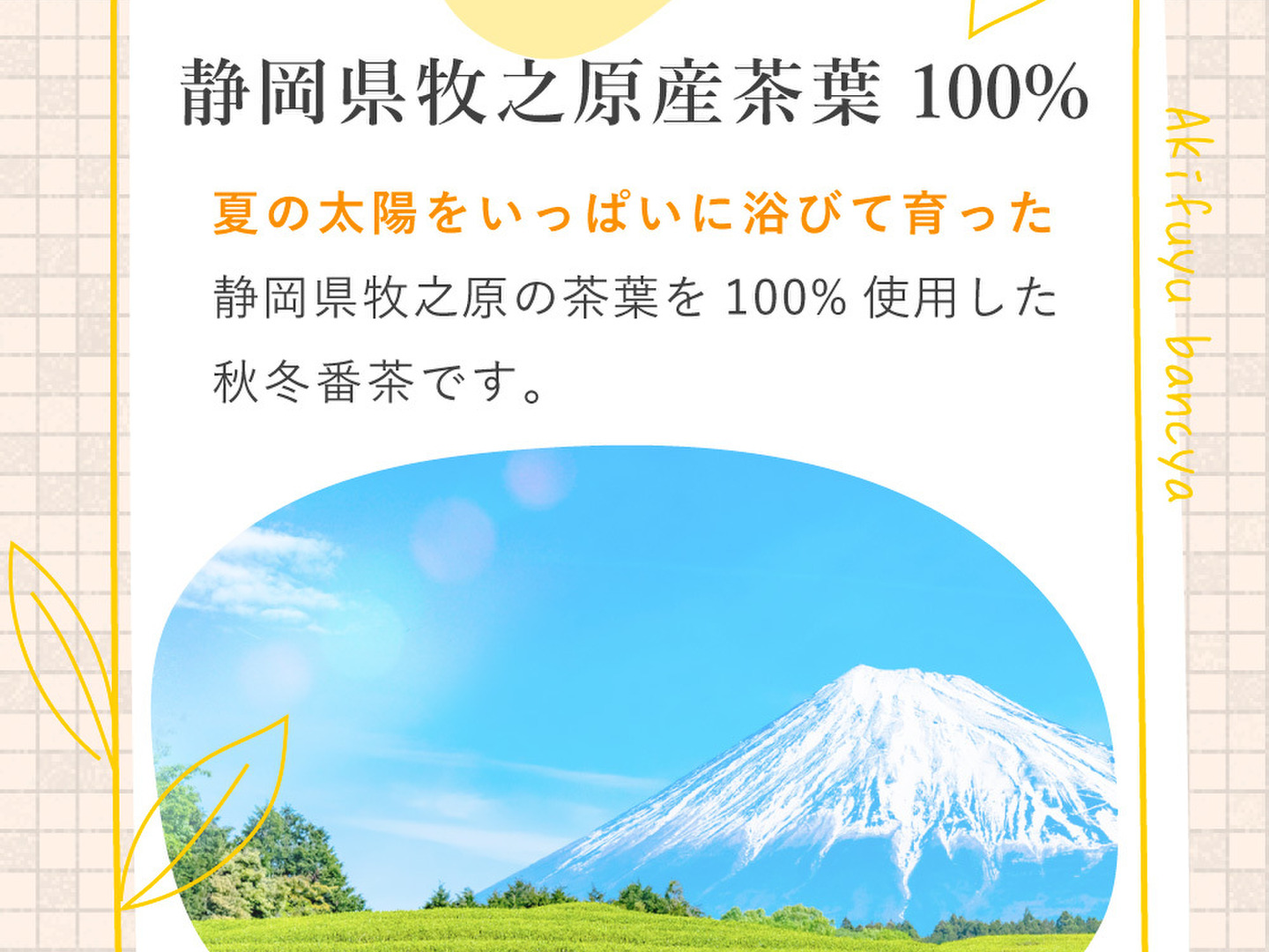 夏の太陽をいっぱいに浴びて育った、静岡県牧之原の秋冬番茶です。