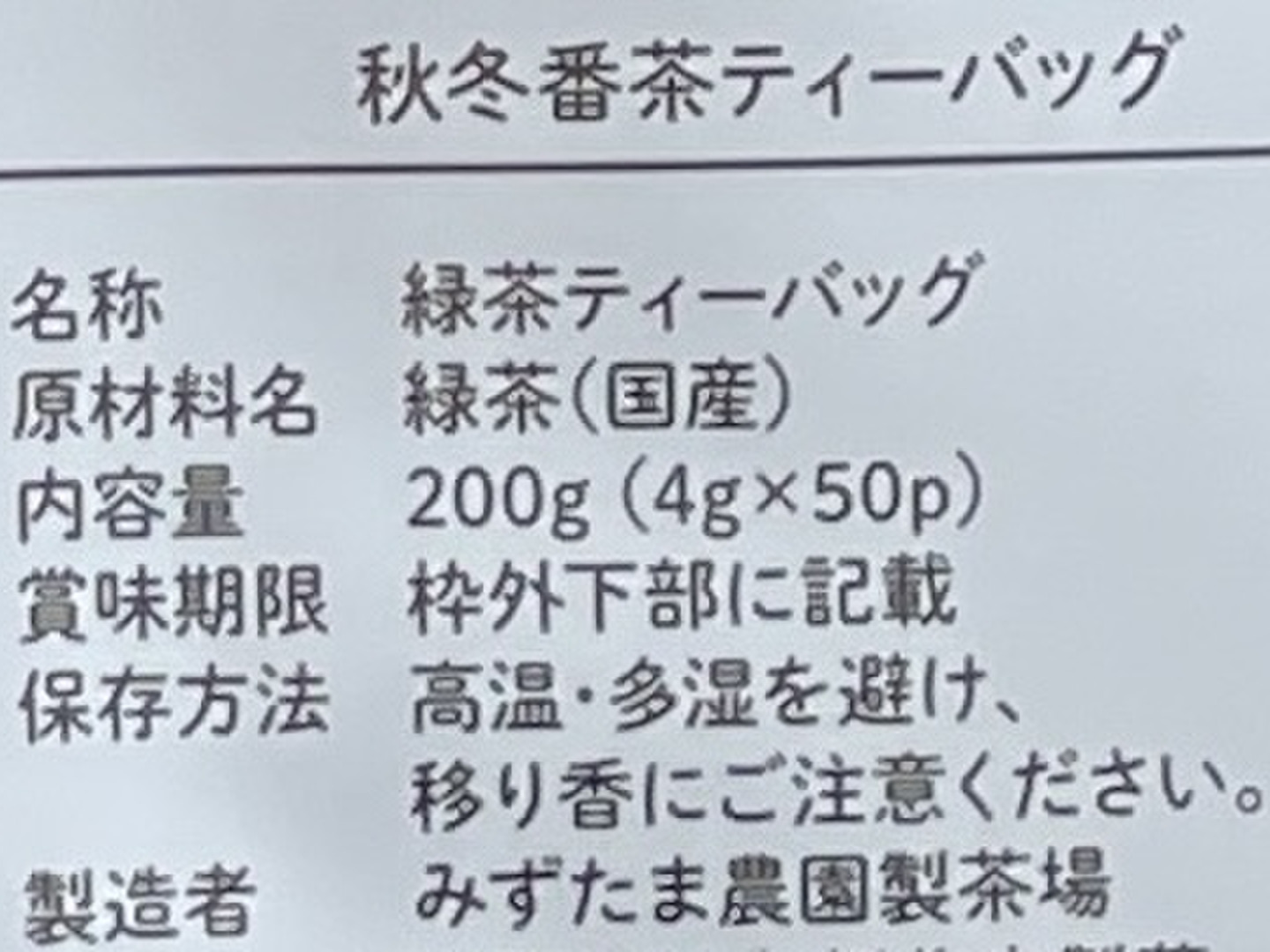 秋冬番茶 ティーバッグ 緑茶 4g×50p