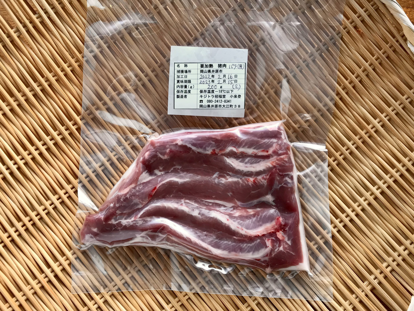 限定品✨ ジビエ【《皮付》猪肉バラ 200g ブロック】220216-2 焼いてパリッもちっ!ほとばしる脂♪