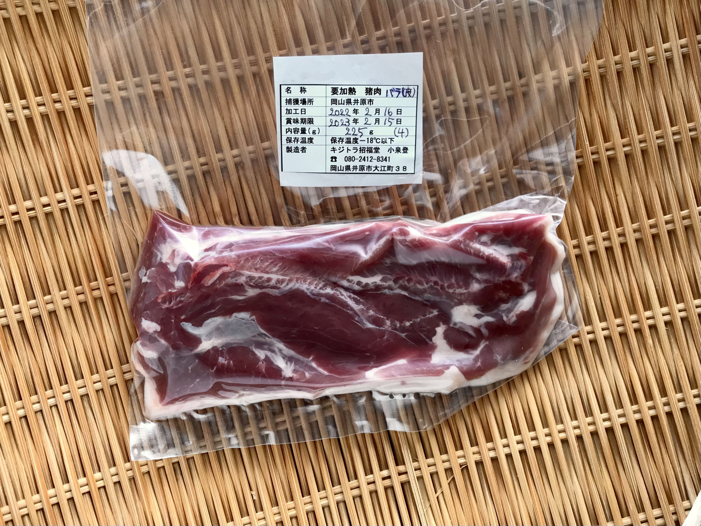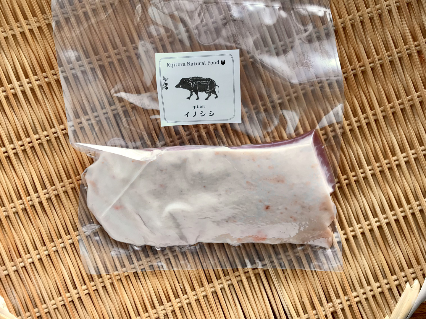 限定品✨ ジビエ【《皮付》猪肉バラ 225g ブロック】220216-4 焼いてパリッもちっ!ほとばしる脂♪