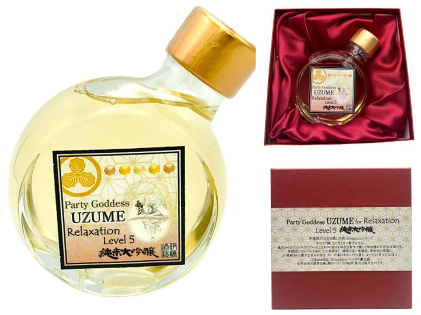 UZUME Party Goddessシリーズより、Relaxation Level5 純米大吟醸150mlを1本お届けします。希少性はもちろん、赤箱入りなので贈り物にもピッタリです。