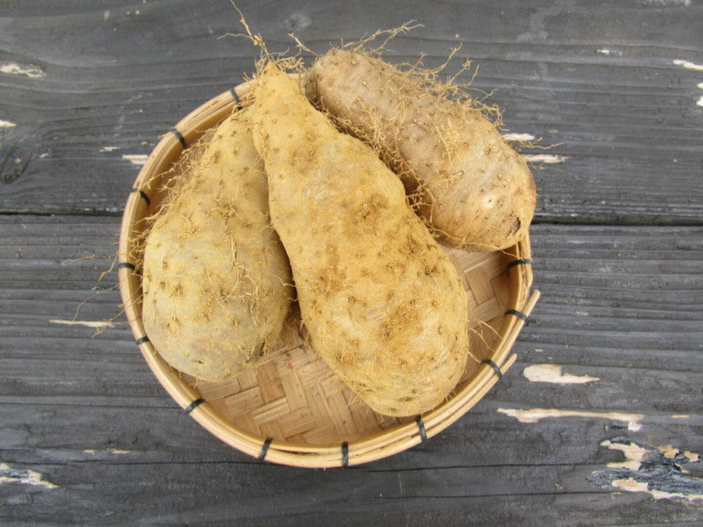 傷みが早く、今では、生産する農家が少ないため、あまり市場では見かけない芋です。