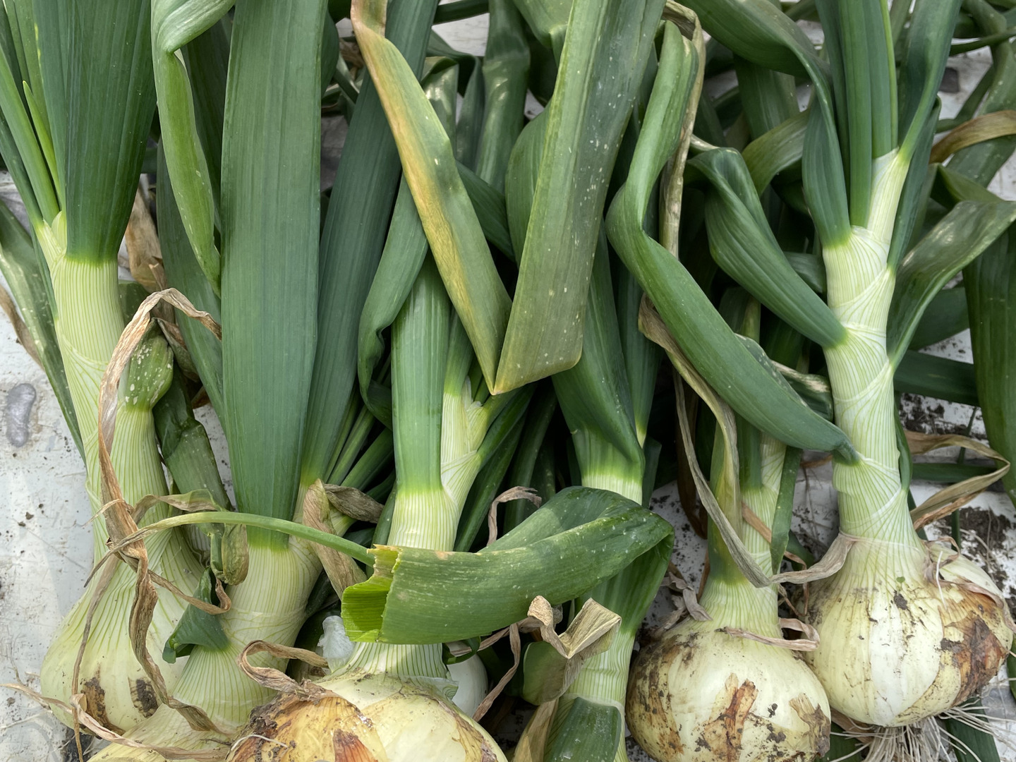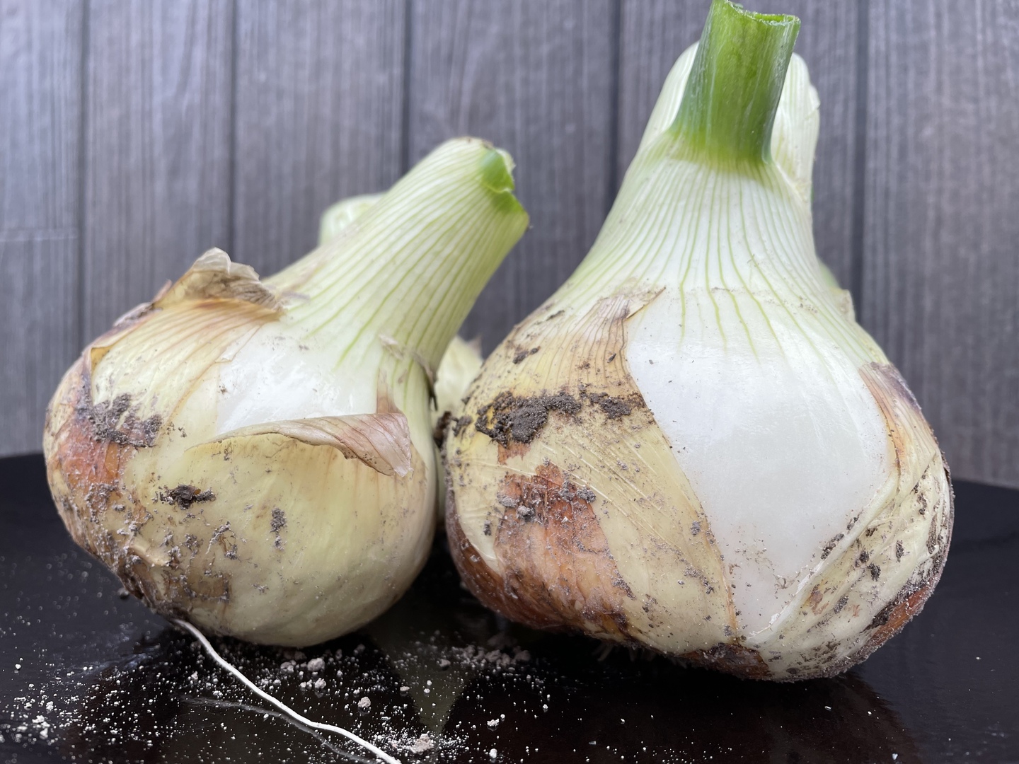 この時期の玉ねぎは収穫してからも成長し新芽が出てきますが品質には影響ございません。新芽も召し上がることができます。