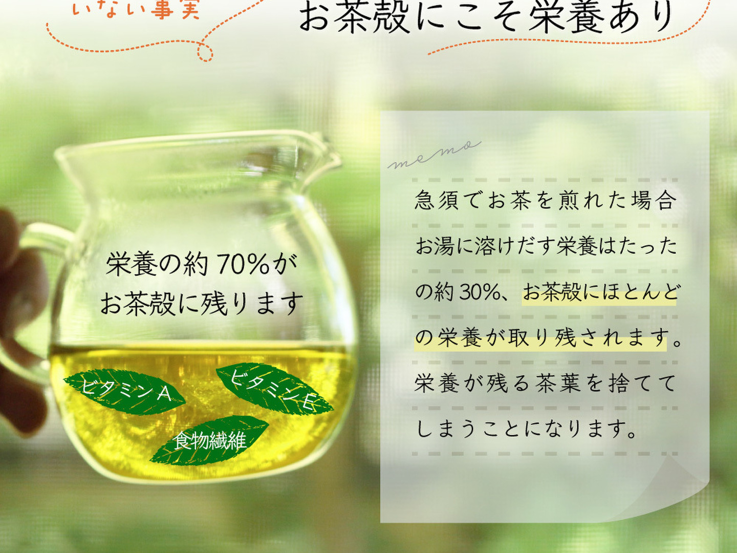 さらに抽出して淹れる煎茶では摂取することのできない水不溶性成分を丸ごと摂取することができます。