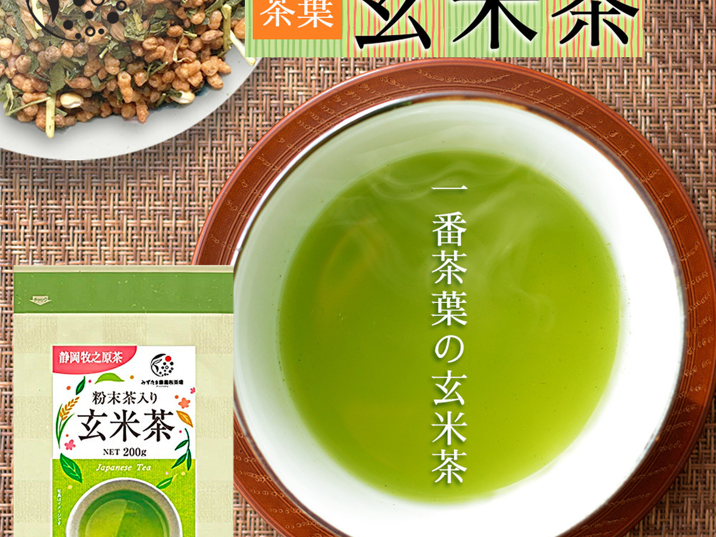 【メール便・単品】一番茶のみ!粉末茶入り玄米茶 200g