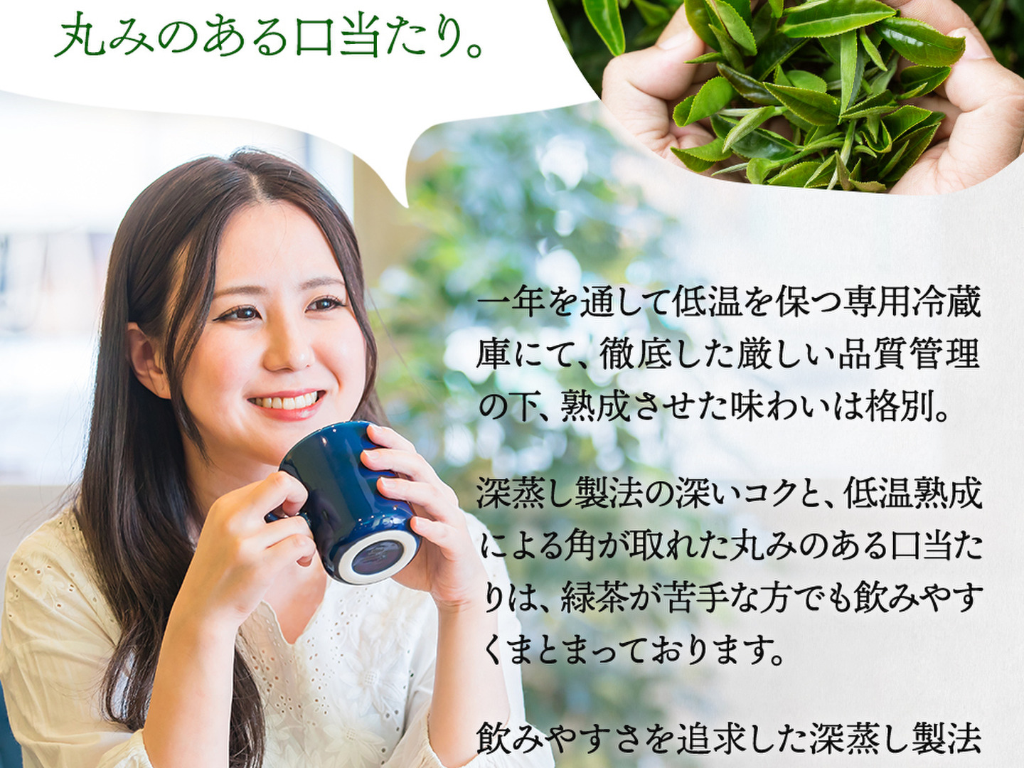 一年を通して低温管理されたお茶専用冷蔵庫でじっくり熟成しました。