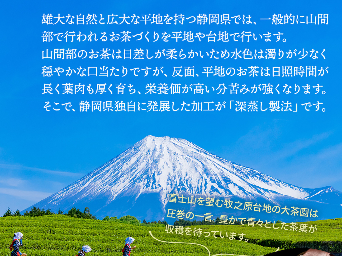 日本を代表するお茶処、静岡県牧之原市のお茶農家兼製茶工場より、深蒸し茶を直送します!