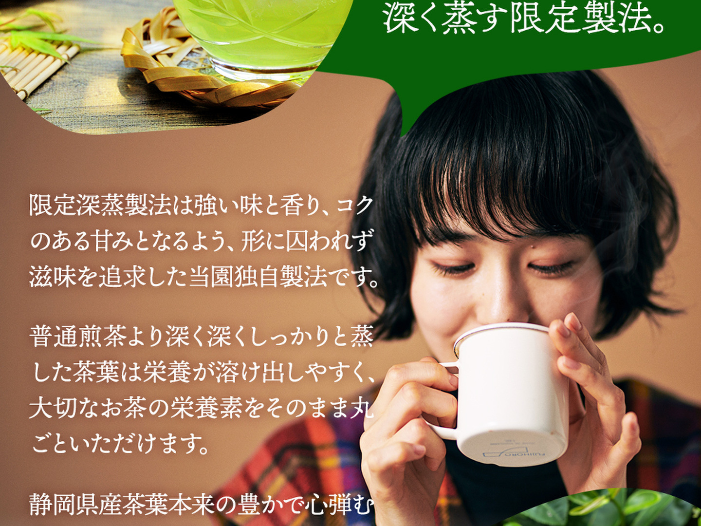 深蒸し茶を飲むことによって、カテキン等の可溶性の有効な成分を効果的に、美味しく取ることができます。