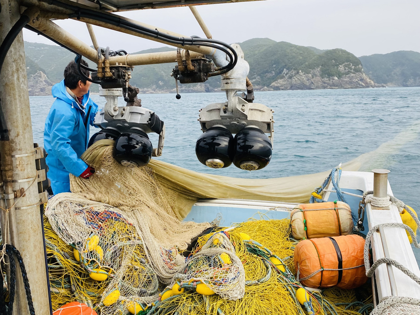 • 2 生しらすの鮮度にこだわり、九州では珍しい一艘曳き漁法でしらす漁をしている。