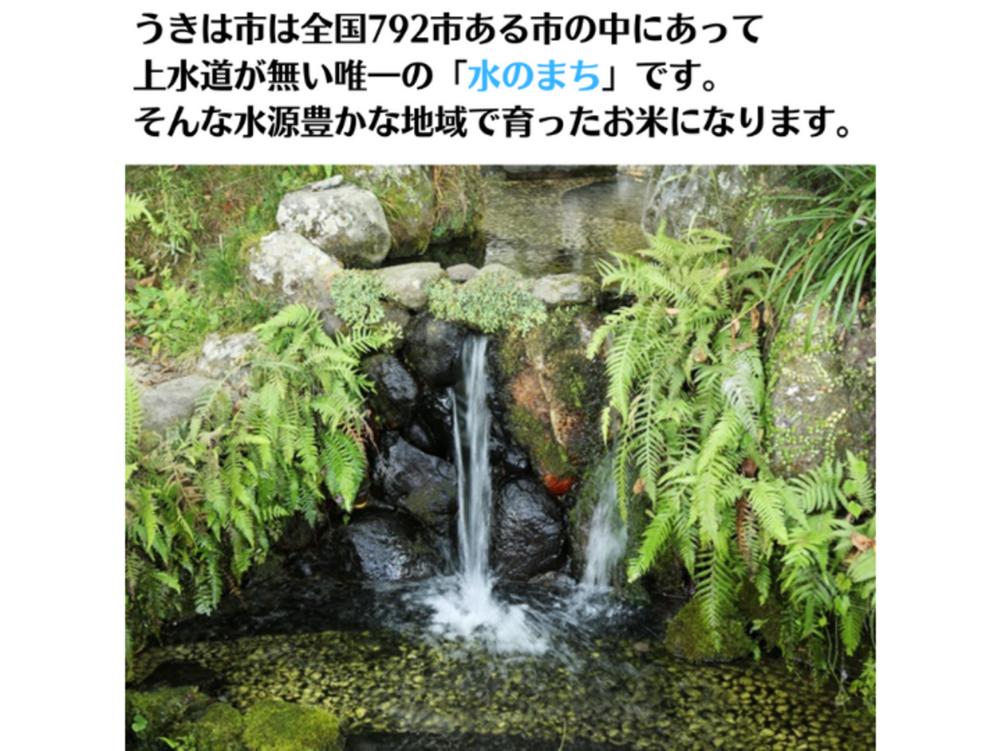 このお米が育ったうきは市は全国792市ある市の中にあって上水道が無い唯一の「水のまち」です。うきは市の地下には、約80万年前から筑後川によって運ばれてきた土砂が堆積し、地下水はこの土砂のすき間を流れています。清水湧水という「日本名水100選」にも選ばれたお寺もあるほどです。そんな清き水源豊かな土地で育ったお米ですので美味しくない分けがありません。