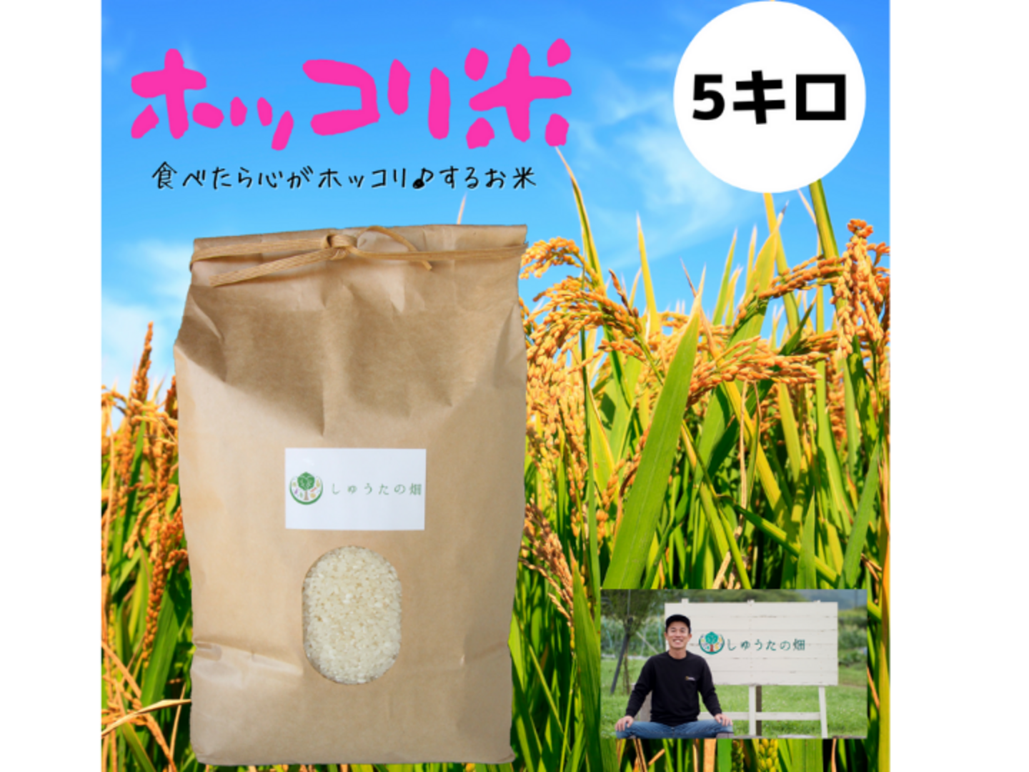 自分自身が畑に心を救われた経験から、畑で採れる作物を食べて頂く方に「癒しを届けたい」「笑顔を届けたい」という思いから「ほっこり米」と名付けています。