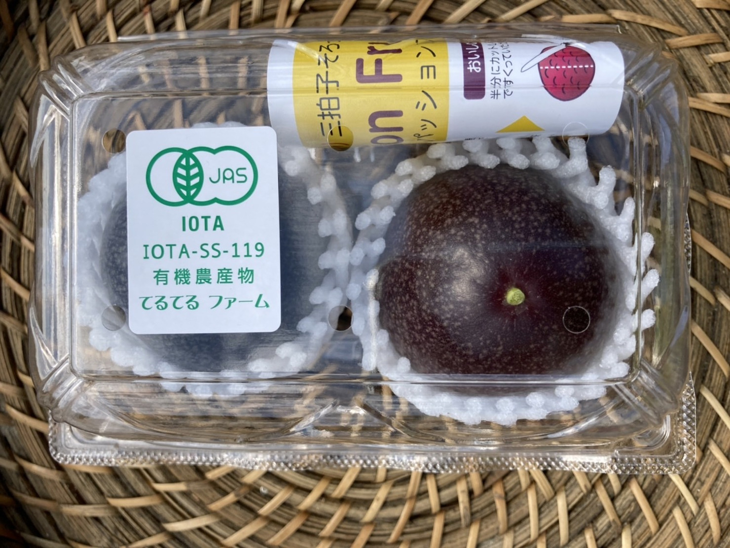 パッションフルーツの花につきやすい害虫が悪さをしないうちに、花が開くと同時に花ごと手で取り除くなどして農薬は一切使わずに栽培し、有機JAS認証を取得しています。