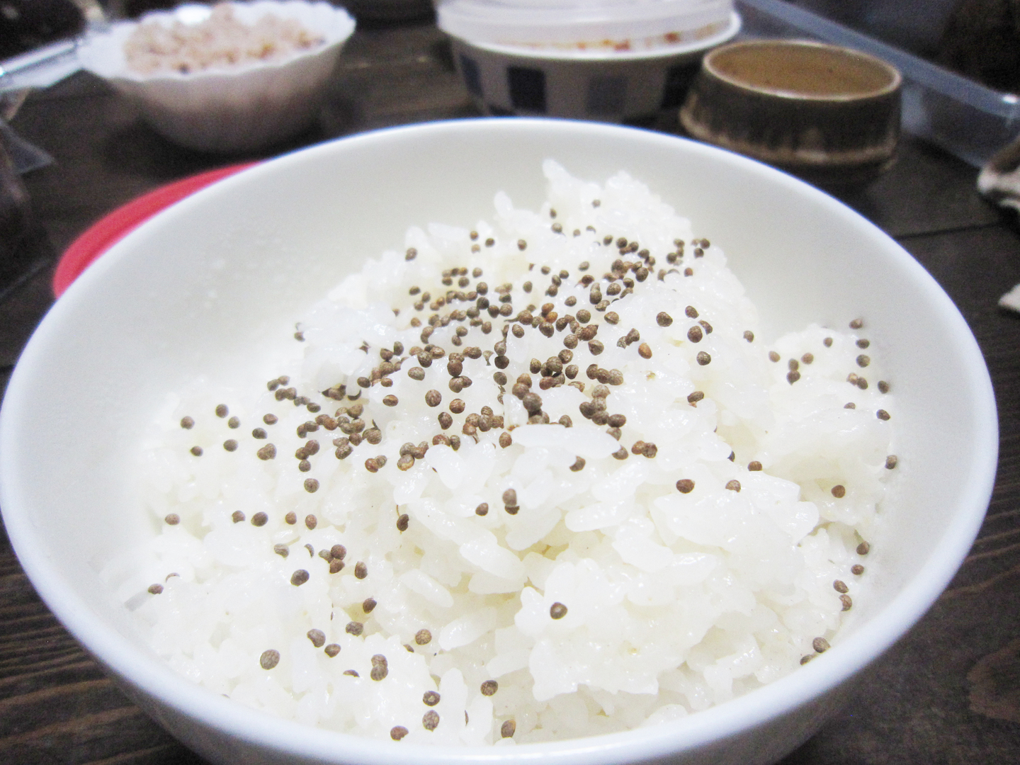 ご飯だけでなくうどんやそばのおつゆやおかずでも、ふりかけ?!感覚で。お菓子とかパンに混ぜたりもしますし、サラダの飾付にしても良いかもしれません。紫蘇科なので、噛むとふわっと良い香りがしてきます。