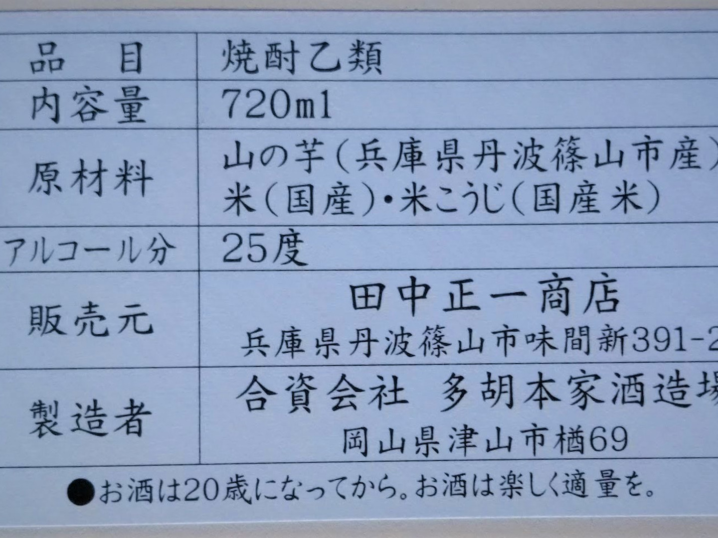 【五つ星ひょうご選定品】丹波篠山 山の芋焼酎 720ml