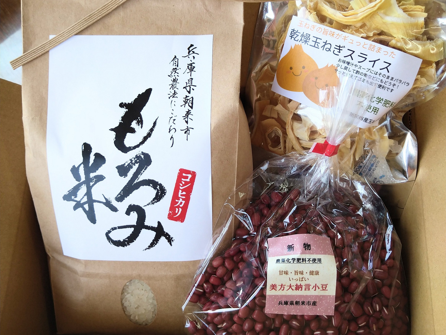 【初回限定BOX】コシヒカリ2キロ・美方大納言小豆1キロ・乾燥玉ねぎスライス40g