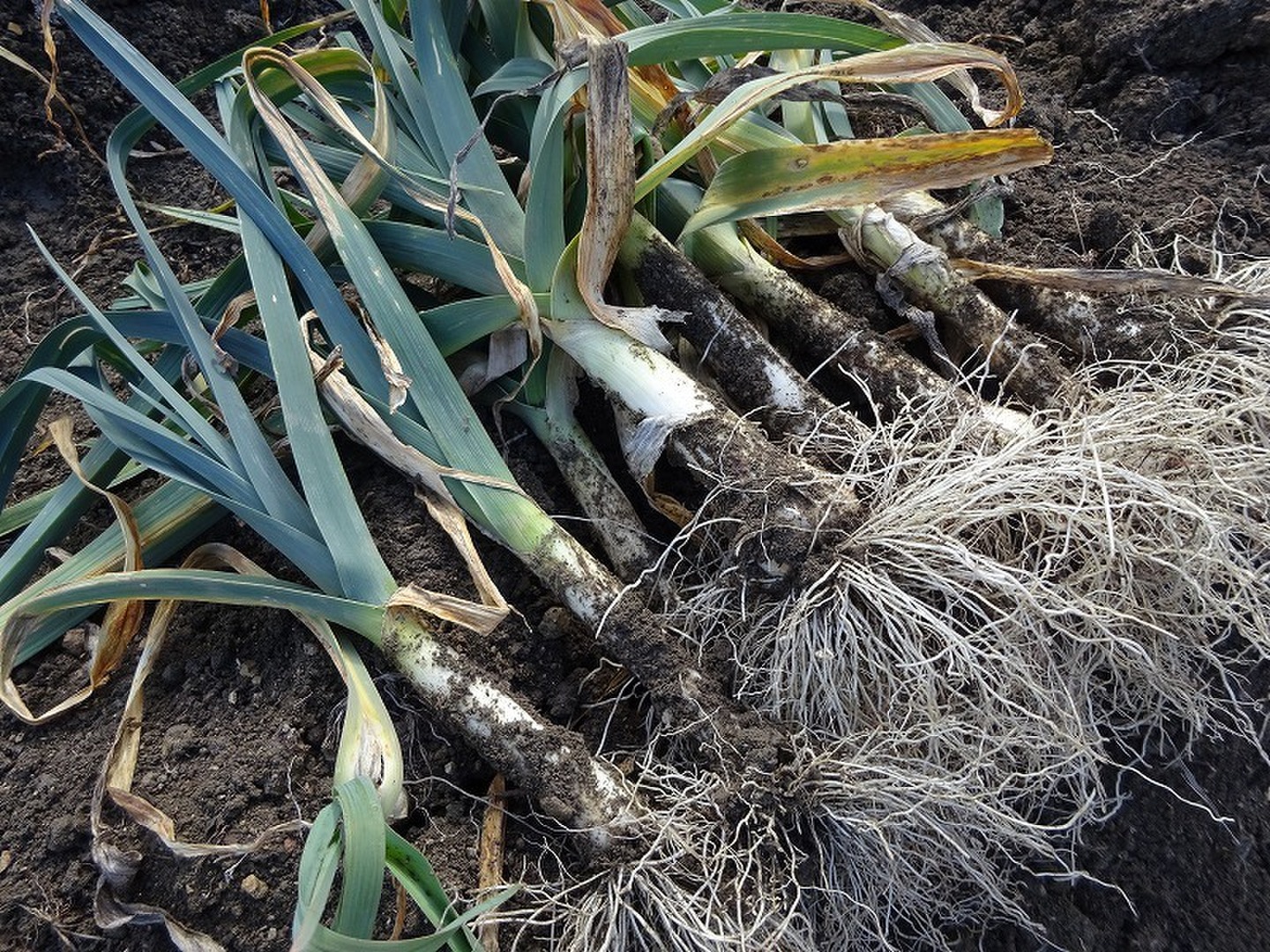 リーキは白ネギと違って青い葉っぱの付け根から土が入りやすい形をしています。 白い部分は大丈夫かと思いますが、必ず縦に半割に包丁を入れて流水で葉の間をよく洗ってください。 美味しく食べていただくコツです。