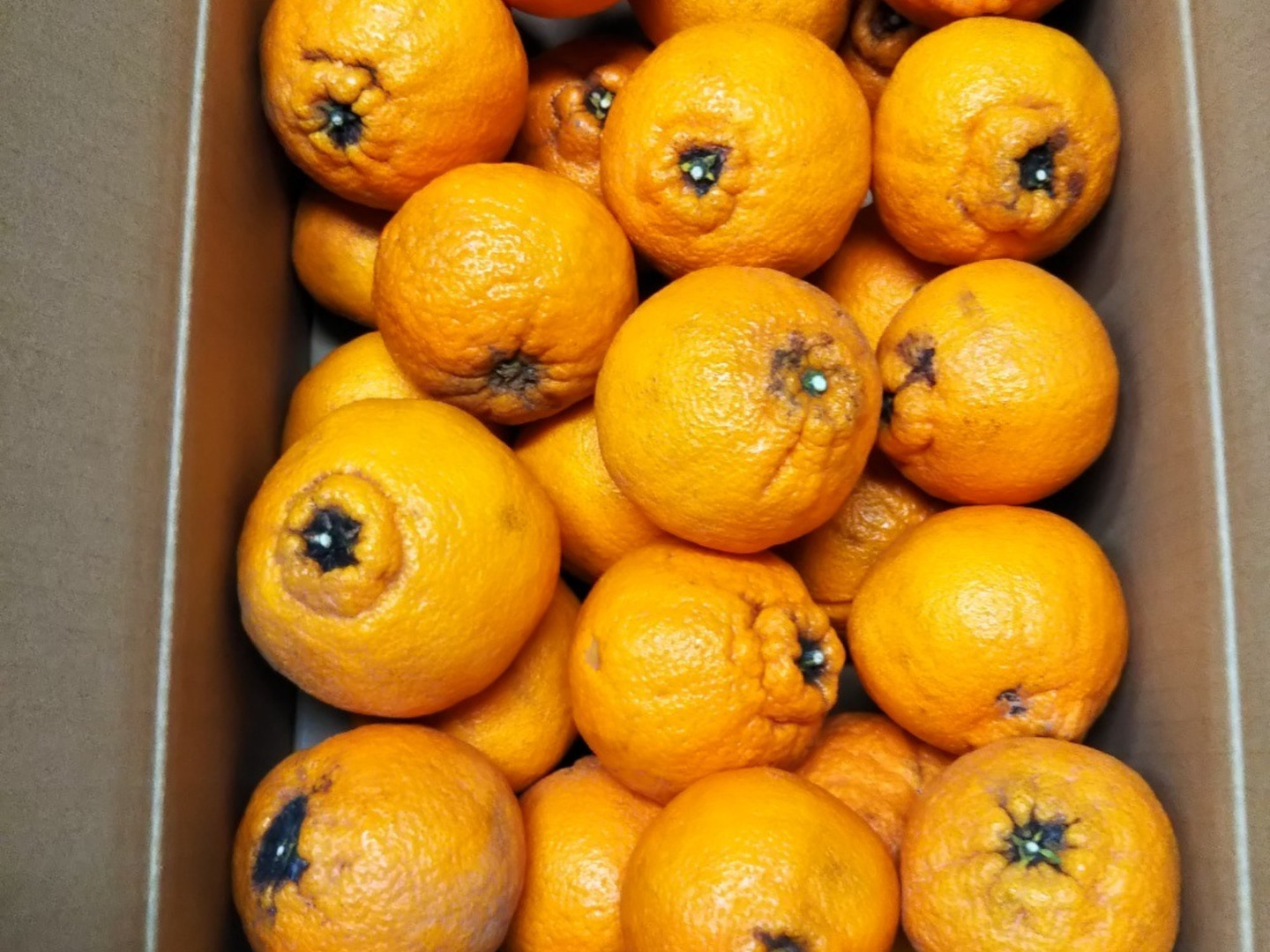 ・家庭用B級の選別で出たものになりますので、傷やへたの所が黒くなっているものが多いです。