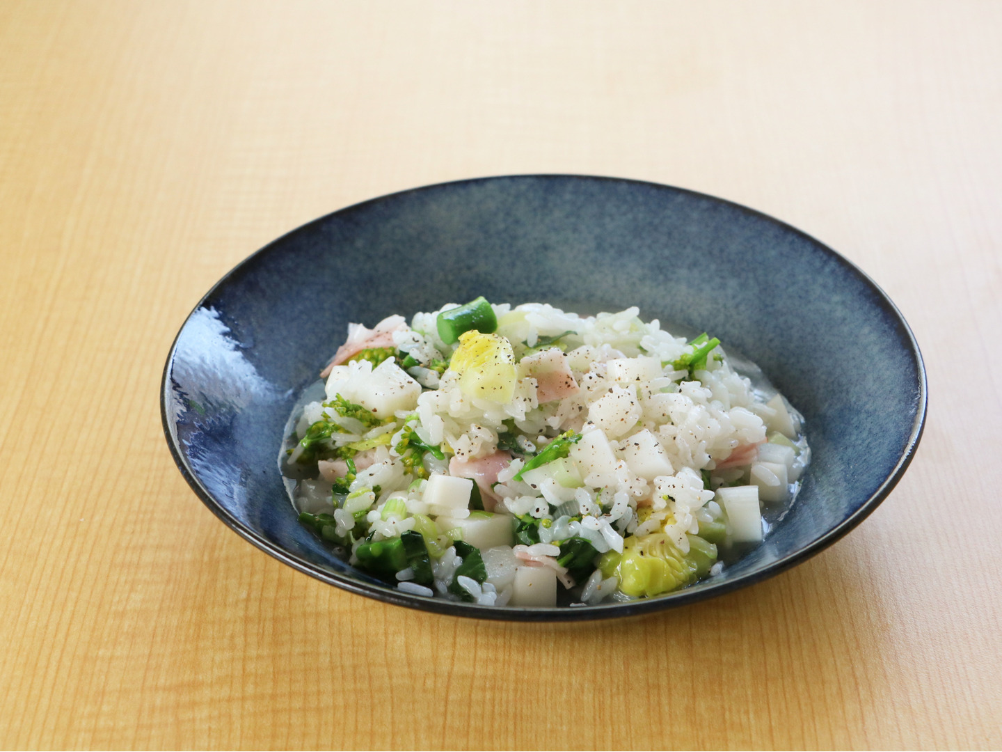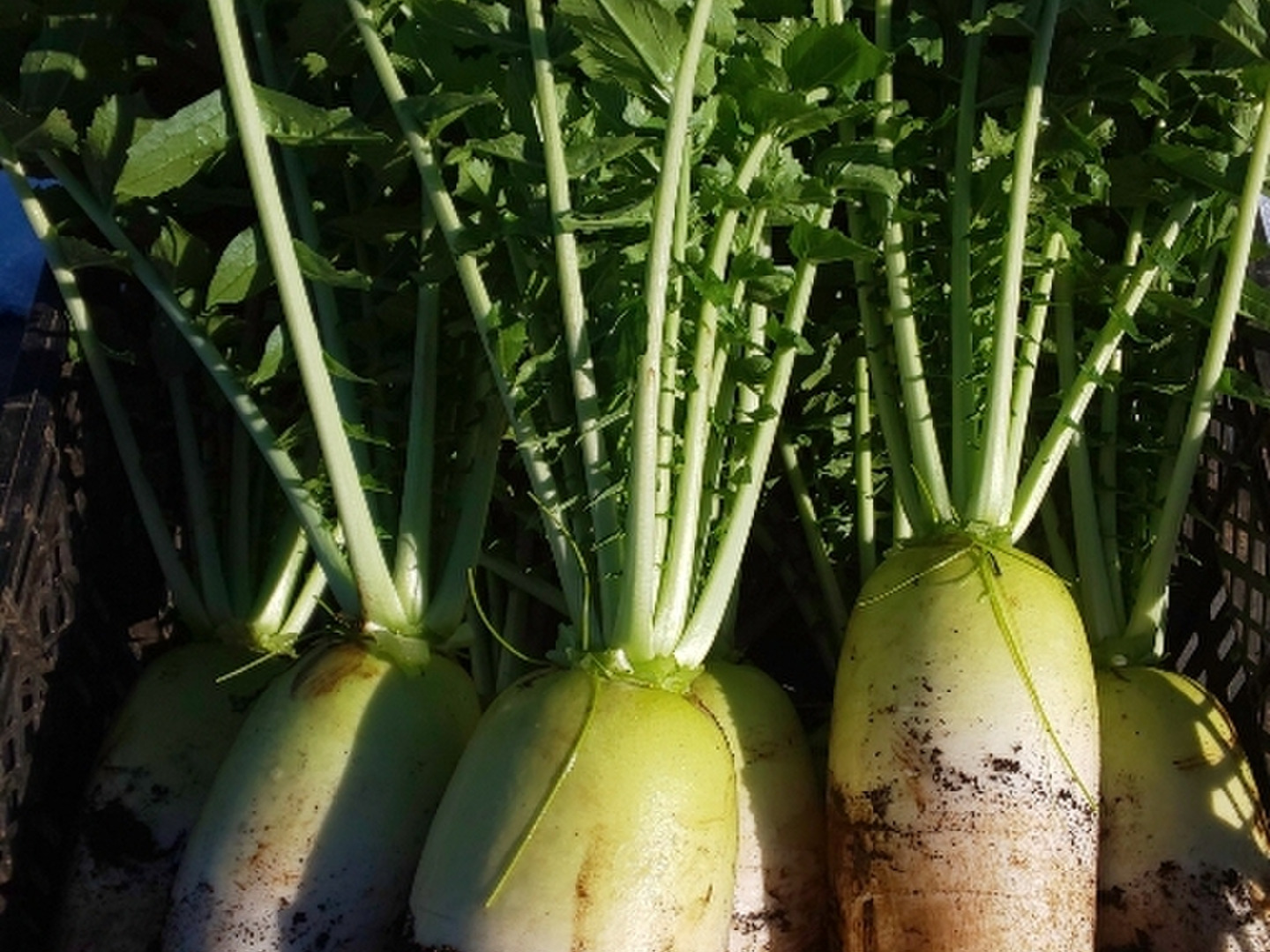 人参 カブ 大根 芽キャベツ サラダ白菜(タイニーシュシュ) アレッタ(スティックブロッコリー)またはブロッコリー ほうれん草 アイスプラント 葉玉ねぎまたはネギ