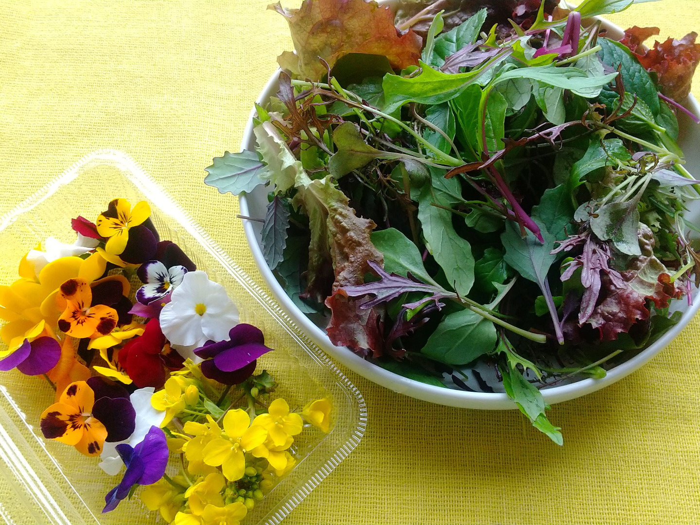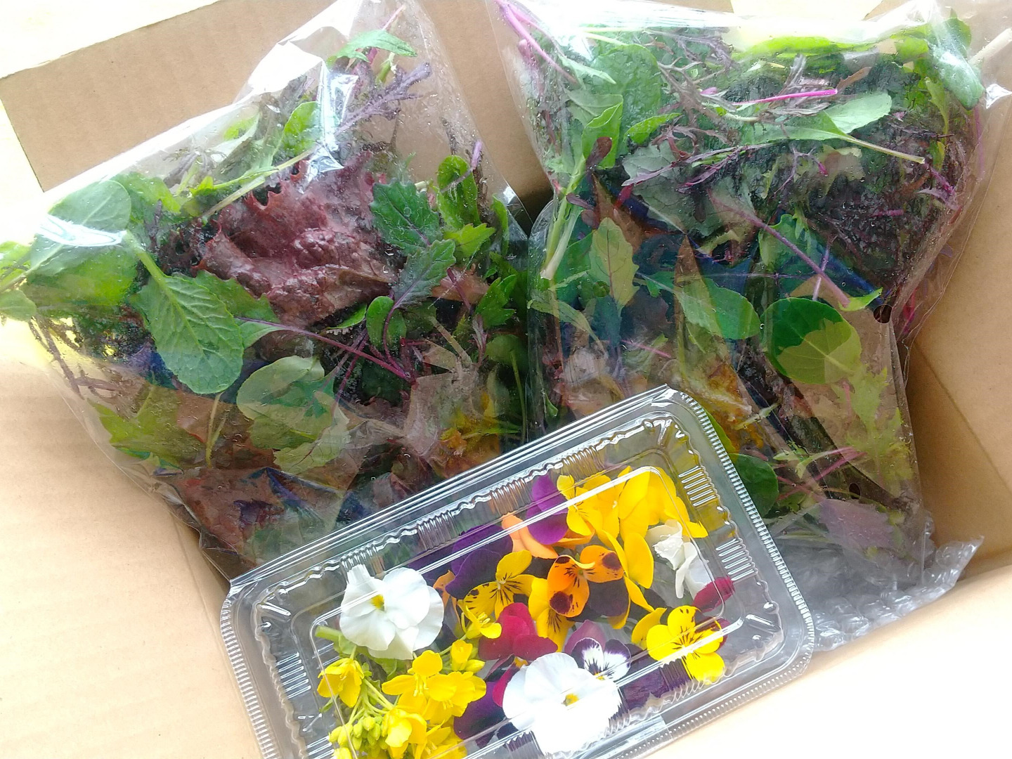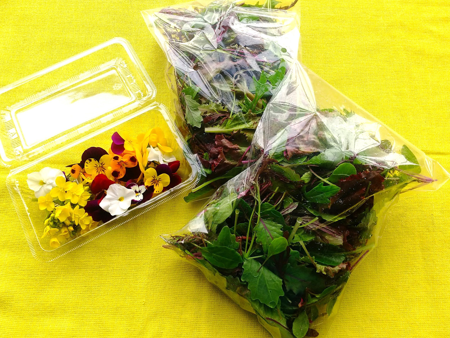 エディブルフラワー20輪、ベビーリーフ50g×2袋