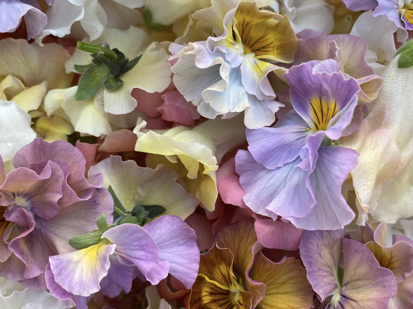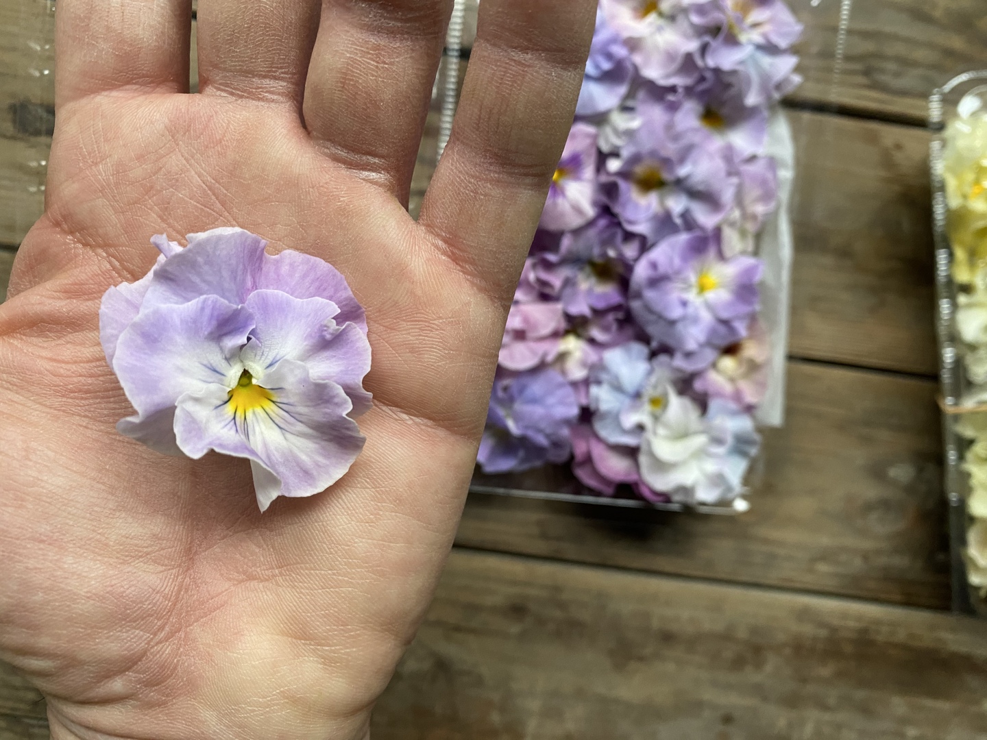 園芸用で人気のフリルパンジー【花日和オリジナル】通常は園芸用として出荷されている人気品種ですが、友人農家のブランドゆえ、特別に種から農薬不使用で育ててもらった苗を分けていただき、大切に育てた食用です。