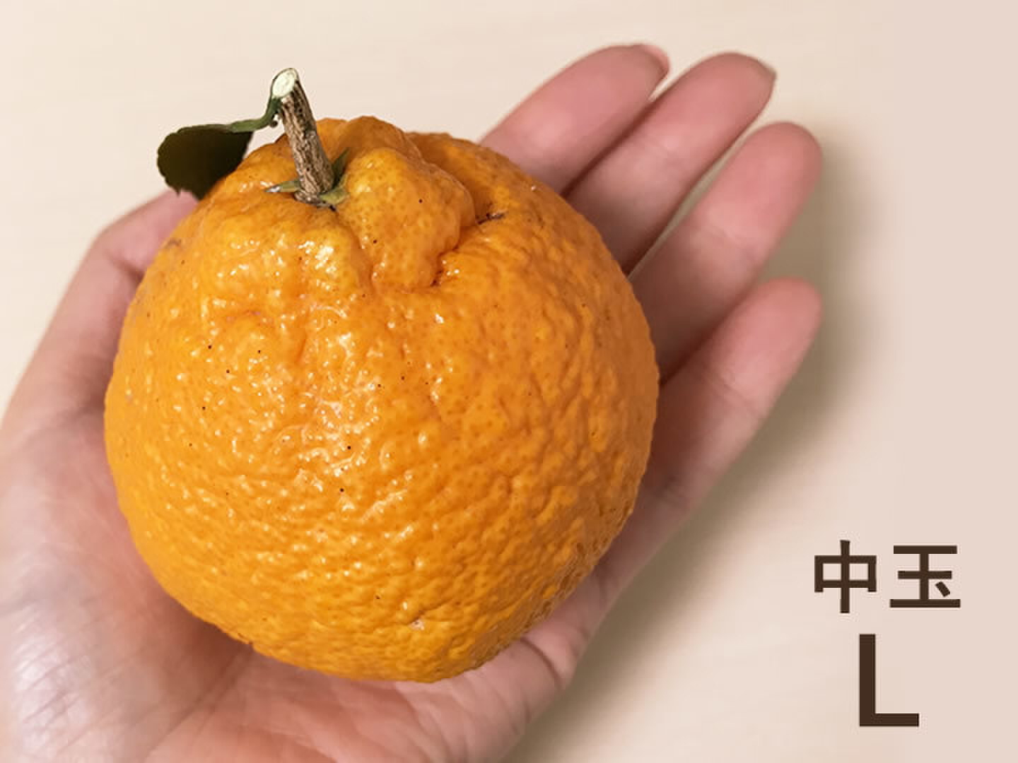 Lサイズ(73mm~80mm, 180g前後(※1))は大玉の温州みかんくらいの大きさ。食べきりに丁度良いサイズです。