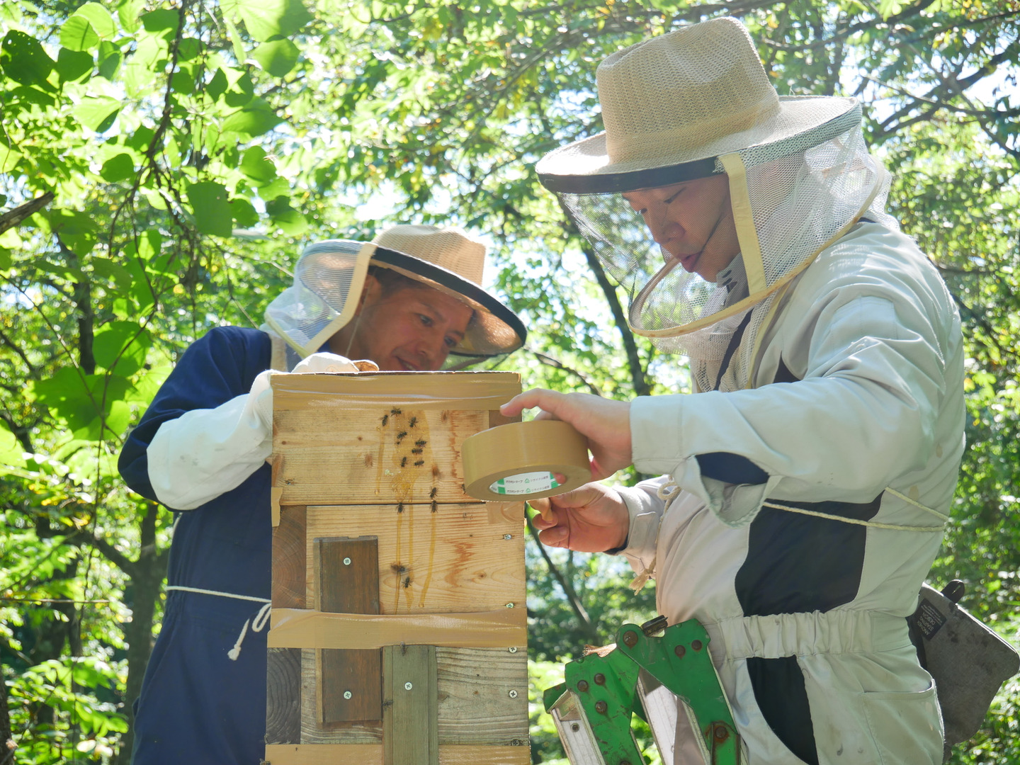 ミツバチたちが蜜を採りに行くのは、養蜂箱の周辺2kmと言われています。