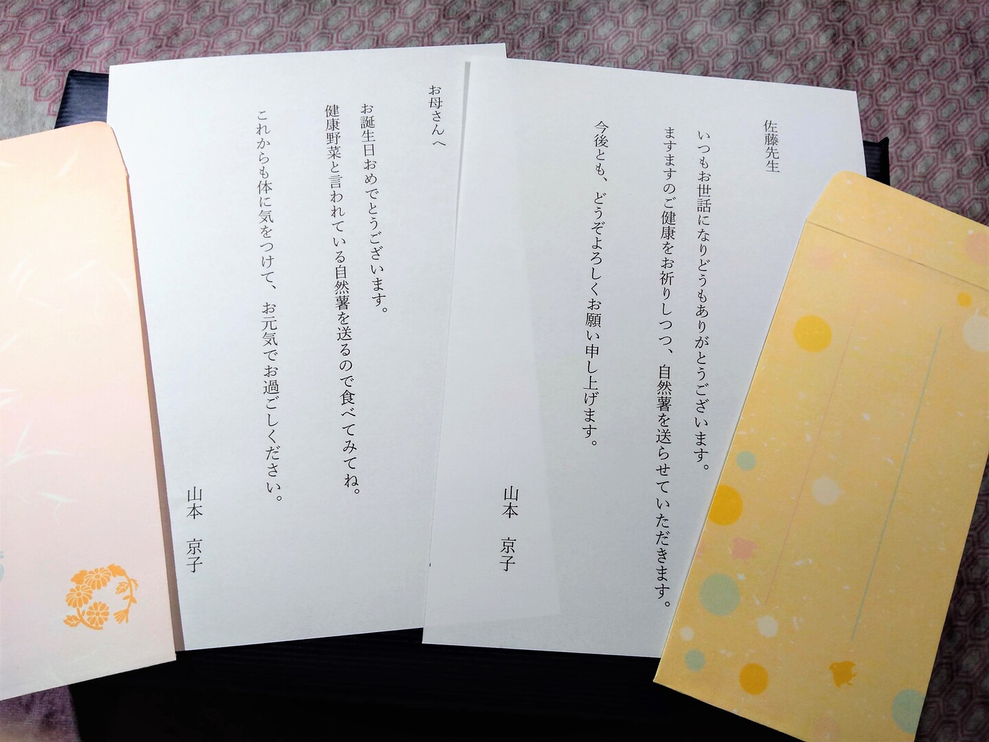 写真にあるようなレターを、ご希望の文面でお入れすることも可能です。(紙面の都合上、80文字以内でお願いします)