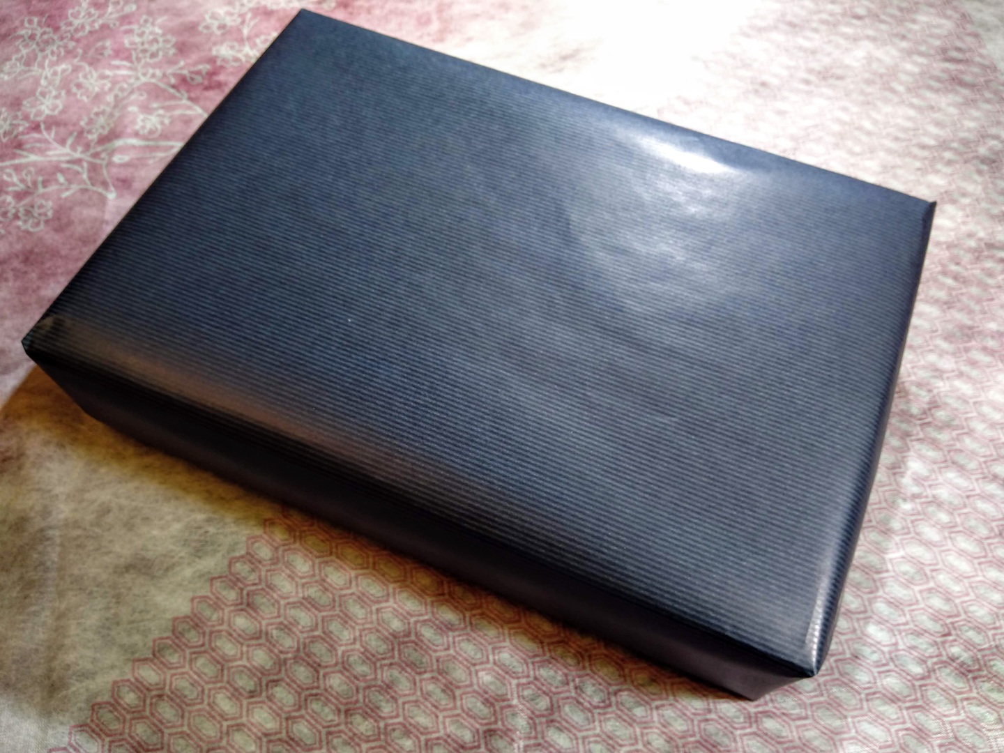さらに、ダークブルーの落ち着いた色味のラッピングペーパーでギフト包装をいたします。