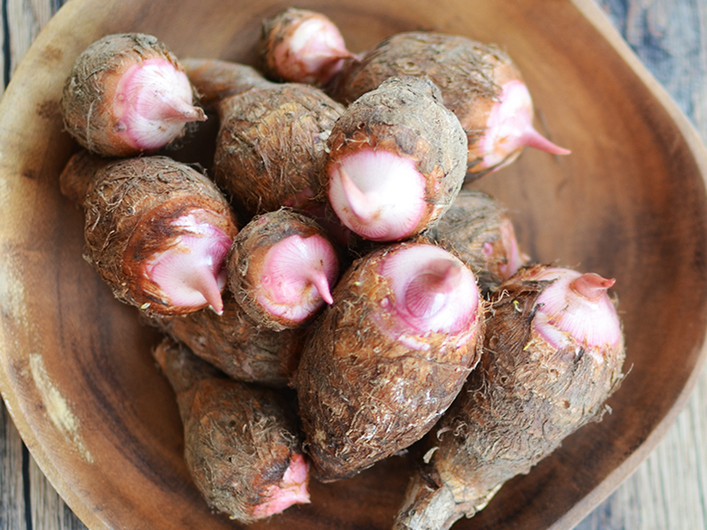 宮崎県産 赤芽の里芋、セレベスという品種です。