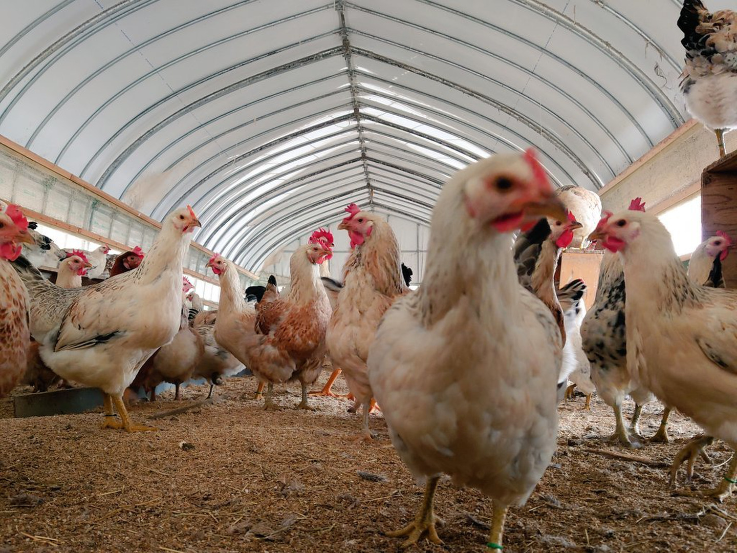 同じ面積だと、ケージ飼いの何分の一しか鶏を入れることができず、卵も巣箱を一個ずつ回って回収しているため、大量生産に向く鶏ではありません。