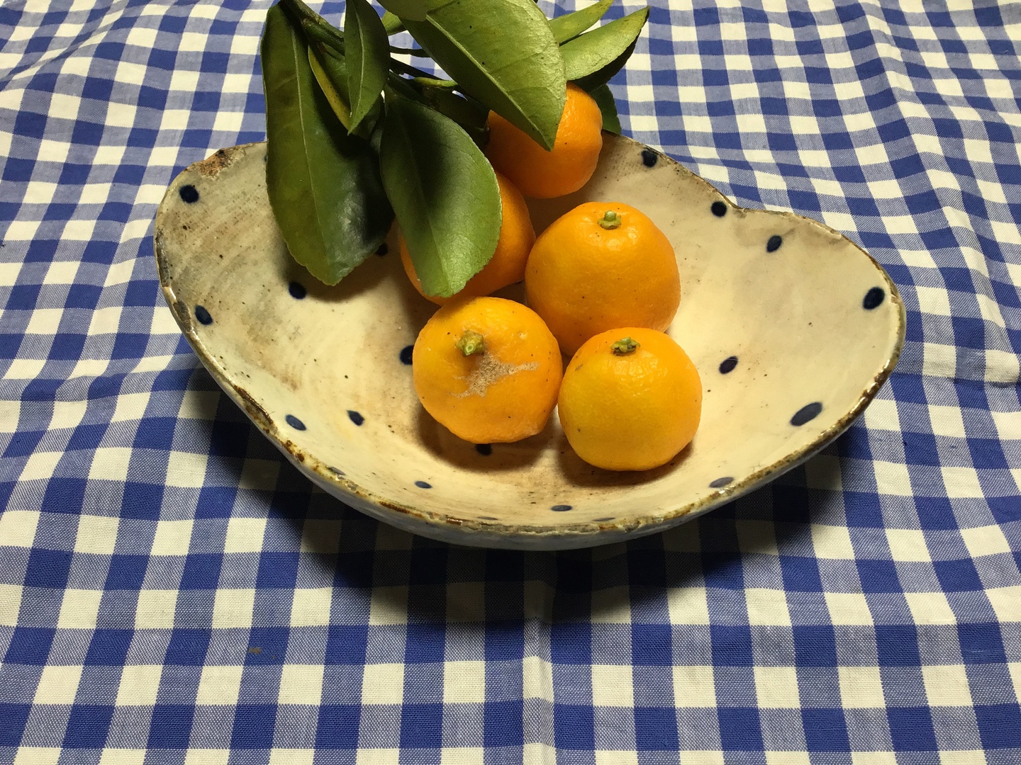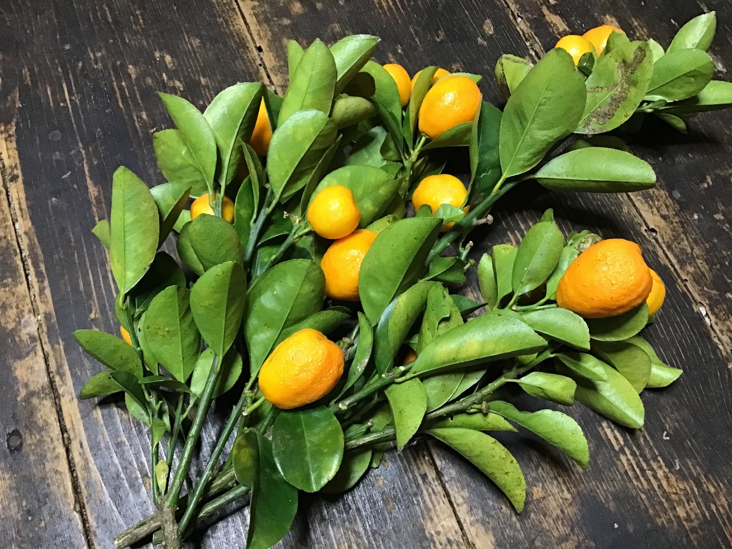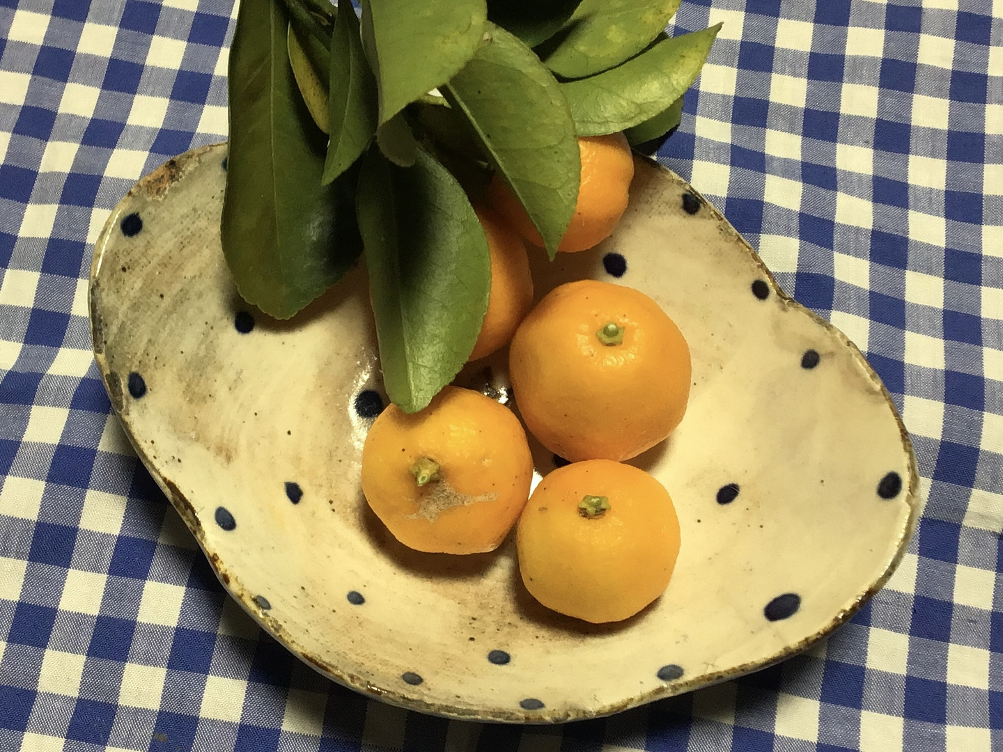 甘い品種ではないので金柑はシロップやお酒に加工したりと加工用のキンカンです。皮はほろ苦い甘い味わいで果肉は酸っぱいです。色味はまだ緑から黄色のまだら色から黄色といったかんじです。着色するまで農地が寒冷な場所にあるためそれまで栽培を継続できないため色味はそのような色味でございます。
