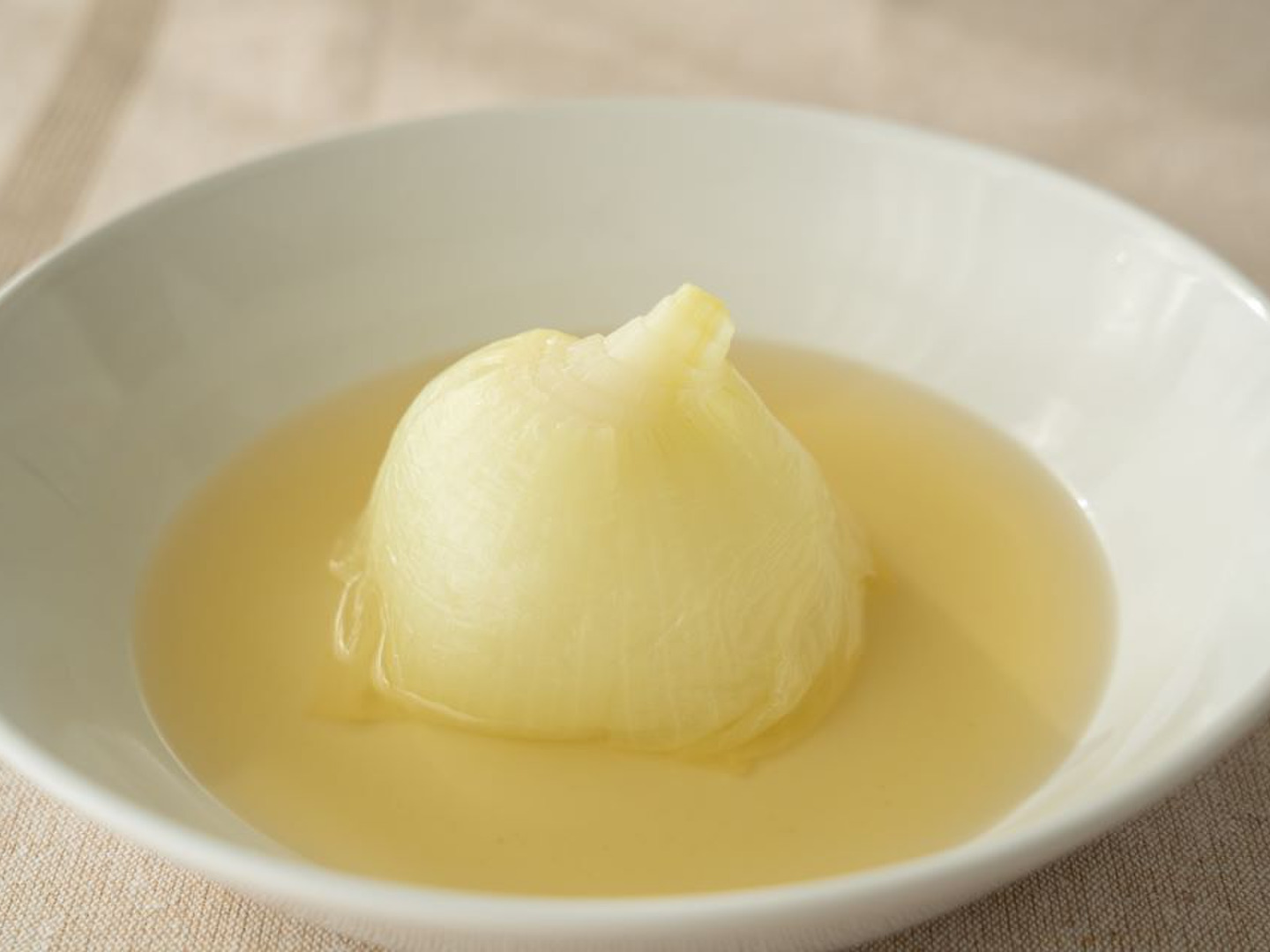 皮をむいた玉ねぎを耐熱皿に乗せ、十字に切れ込みをいれたあとバターを挟み、オーブンで焼きます。仕上げにチーズを乗せて完成!