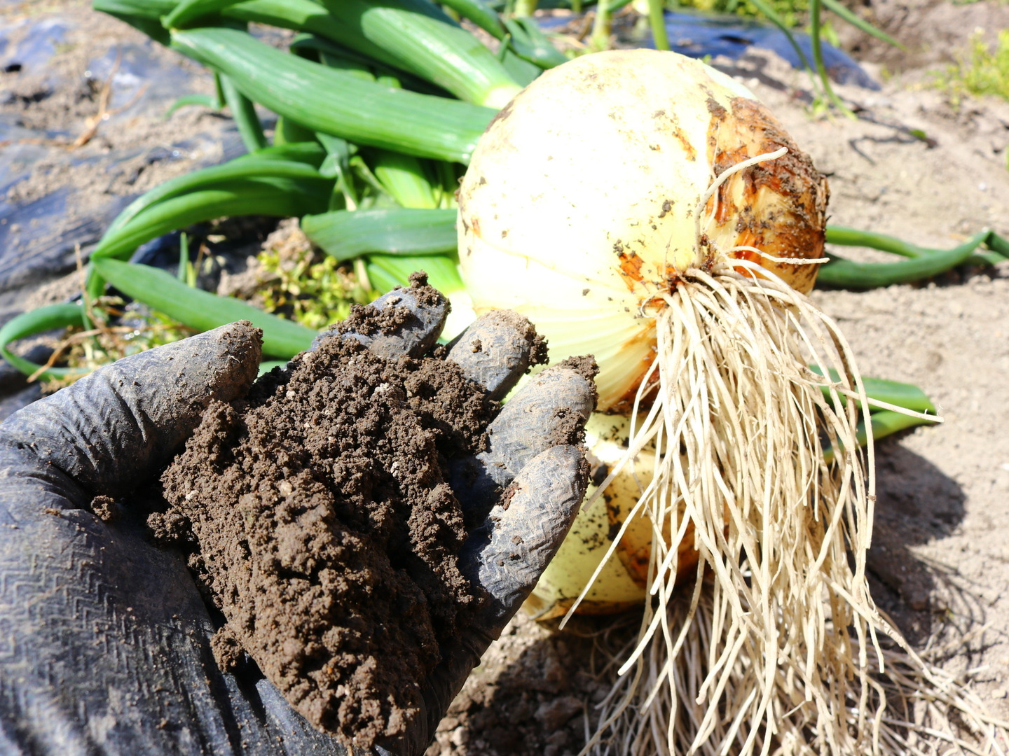 圃場は土壌改良、土壌管理を徹底し作物の根張りを良くするために根が深く広く十分に張り、できるだけ玉葱にストレスをかけず養水分が良好に吸収できるよう、有機質肥料を施用し土壌を柔らかくすることにもこだわっております。