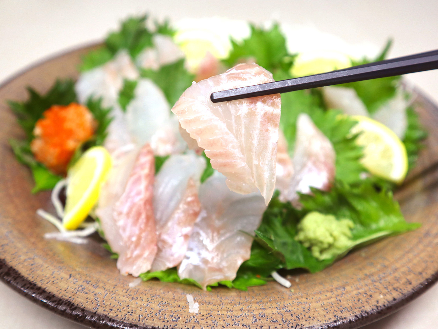 - ぷりぷりの食感、淡泊ながらあぶらの乗った刺身
