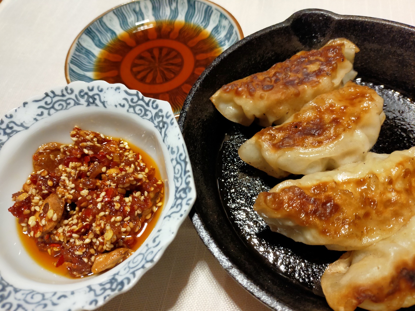 餃子(たれにパパッと振りかけて!または手作りラー油も!)