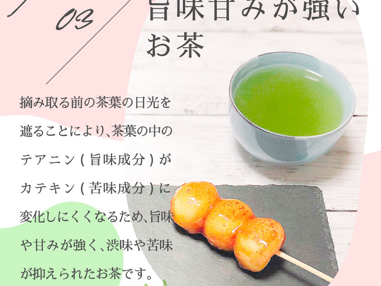 被覆することによって生まれる独特の香り、鮮やかな緑色、まろやかな甘さを楽しめます。