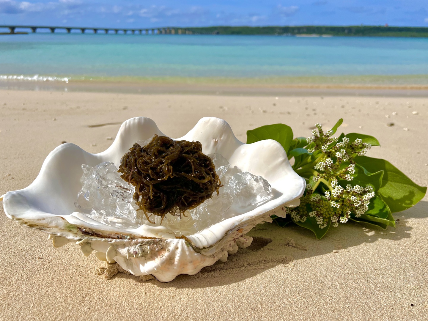 そのため海にもミネラルや栄養を含んだ地下水が沸き出ています。栄養豊富な海域を漁場に養殖しているため質の良いモズクを養殖することができるのが特徴です。